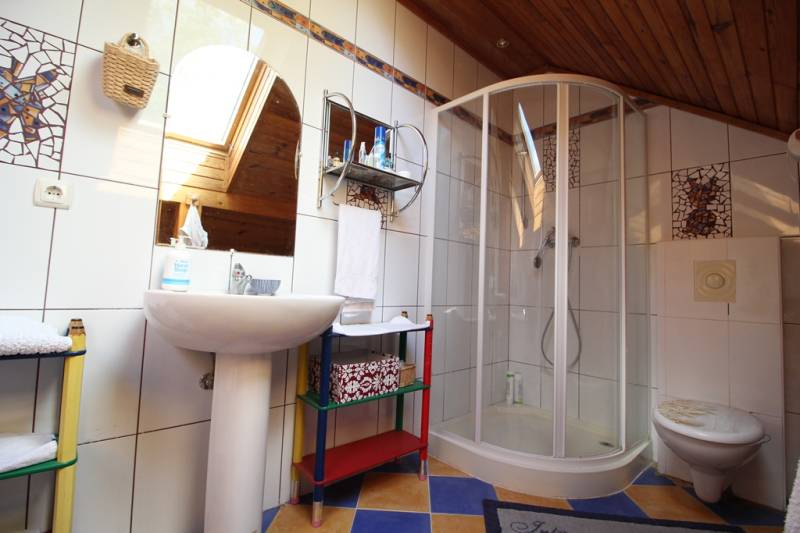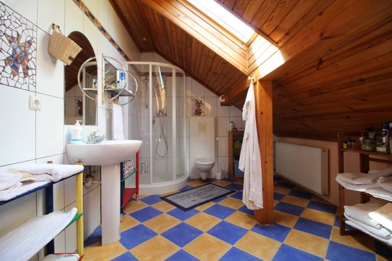 ELADÓ CSALÁDI HÁZ A MOGYORÓDI LAKÓPARKBAN!Mogyoródon, a közkedvelt Szentjakab-parkban, csendes aszfaltozott utcában, ELADÁSRA KÍNÁLUNK, egy hangulatosan parkosított, 1153 nm-es telken lévő, 2 szintes, 330 nm-es hasznos lakóterületű, 6 szobás, szerkezetileg jó állapotú jól megtervezett, jó elosztású önálló családi házat. Az ingatlan kizárólag a mi kínálatunkban található.A Szentjakab park fő jellegzetessége, maximálisan biztonságos, sorompón keresztül közelíthető meg a terület, 24 órás portaszolgálattal, szellősen épített házak, jó megközelíthetőség. Több útvonalon (M3, M31,M0, 3) is megközelíthető Budapest.HÉV (Örs vezér térre), egyik megállója parkfalunál található. Földszinten: nappali étkező, konyha, kamra (82 m2) , 2 hálószoba külön fürdővel és WC-vel, dupla garázs (37 m2), előszoba,kazánház, lépcsőház, három terasz (94 m2).Az emeleti részen jelenleg 3 szoba, 3 gardrób szoba, egy nagy társalgó, fürdőszoba, WC található.Műszaki: Porotherm 38-as tégla, 5 cm-es szigeteléssel rendelkezik, monolit födém, hódfarkú cserép, szerkezetileg hibátlan állapotú, azonban esztétikailag felújításra szorul. Fűtéséről gázkazán és kandalló gondoskodik. Villany / Energiaköltsége nulla, napelemmel rendelkezik.Érdeklődés esetén hívjon bizalommal, akár hétvégén is! Az ország szinte összes bankjának a hiteleit is kínáljuk díjmentes ügyintézéssel. |