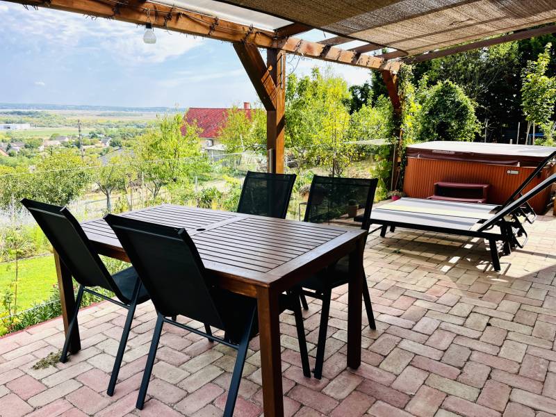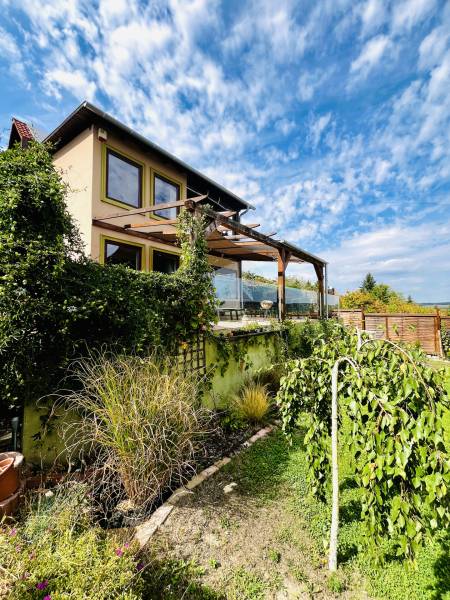 Eladóvá vált szeretett, gondosan karbantartott, háromszintes családi ház Pákozdon, csendes, természetközeli környezetben, csodás örökpanorámával!A tulajdonos által megálmodott természet adta inspiráció hűen tükrözi az ingatlan belső tereinek kialakítása ( fa padló, természetes színek, a Velencei-tó élőlényei által kapott inspiráció az egyedi kézműves üvegablak megtervezésében is szerepet játszott )és a kertben található növények évszaknak megfelelően kialakított virágzási sorrendben. Esténként a teraszon pihenve csodálhatjuk a gyönyörű panorámát a Velencei-tóra és a közeli természetre, akár egy pohár koktéllal a kezünkben miközben a jakuzziban pihenjük ki az egész napos munkát.Pákozd – Székesfehérvár 10 perc, M7 autópálya 5 perc, Budapest 25–30 perc autóvalFőbb jellemzők:Jogilag rendezettTeljesen teher-, hitel- és permentes ingatlanKivett lakóház, udvar, belterületJelenleg hivatalosan működő vendégházként (Panorama Residence Pákozd)Akár azonnal költözhető vagy tovább üzemeltethetőKiváló befektetési lehetőségTelek és környezet:Az ingatlan 1100 m 2 telken helyezkedik el, a szomszédos telket is megvásárolta a tulajdonos. Összesen kb. 2157 m²-es parkosított telek (két külön HRSZ-en – egyben vagy külön is eladó, a szomszéd telek a vételáron felül értendő )Gyümölcsfák, szőlőtőkék, magaságyások, dísznövények Két utcáról megközelíthetőKülön közművek a két telekrészen (víz, villany, csatorna)Az ingatlanról:Összesen ~180 m² (kb. 126 m² lakótér + loggia, pince stb.)Terasz: kb. 60 m² (részben fedett)3 szint, 2 fürdőszoba (zuhany + kád + bidé)HotSpring prémium jacuzzi a teraszon, csodás panorámával8kW-os napelem rendszer (bővíthető)Elektromos autó töltő kialakítható3 fázis, földkábeles bekötésMozgásérzékelős kamerarendszer + riasztó, élőkép mobilrólFedett beálló 3 autó részéreVízlágyító berendezés a házon belülKonyha & pince + étkező:Nagy méretű konyhapult, gránit mosogatóWifi-s Bosch mosogatógép, modern főzőlap, szagelszívóA konyhából nyíló, száraz, hűvös borospince – ideális tárolásraNappali & dolgozósarok:Tágas nappali, világos terekKülön irodarész (félszobává alakítható)Beépített tetőtér ( hálószoba )Közelben minden, amire szükség van:Iskola, óvoda, bolt, cukrászda, háziorvos pár perc alatt elérhető. Buszmegálló 15 perc séta.A környék csendes, rendezett, kiváló választás családoknak vagy természetkedvelőknek.Tökéletes választás:- saját otthonnak- nyaralónak- befektetésnek (kiadásra azonnal alkalmas)A beépített bútorok, gépek a vételár részét képezik, további berendezés megegyezés szerint.Jöjjön el, nézzük meg együtt – ez a ház valóban a nyugalom szigete!A hely varázsa személyesen átélve ragadja magával az embert – ide csak beköltözni kell.De ha úgy dönt, befektetésnek is tökéletes választás: az ingatlan hivatalosan bejegyzett magánszálláshelyként működik, minden szükséges engedéllyel.Ez a vendégházként is funkcionáló otthon stabil jövedelemforrást jelenthet azok számára, akik a városi nyüzsgésből a természetbe vágyó vendégeknek kínálnák kiadásra.Minden adott a kényelmes pihenéshez, kikapcsolódáshoz és hosszú távú megtérüléshez. |