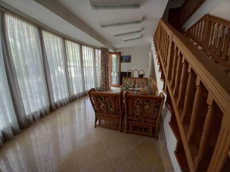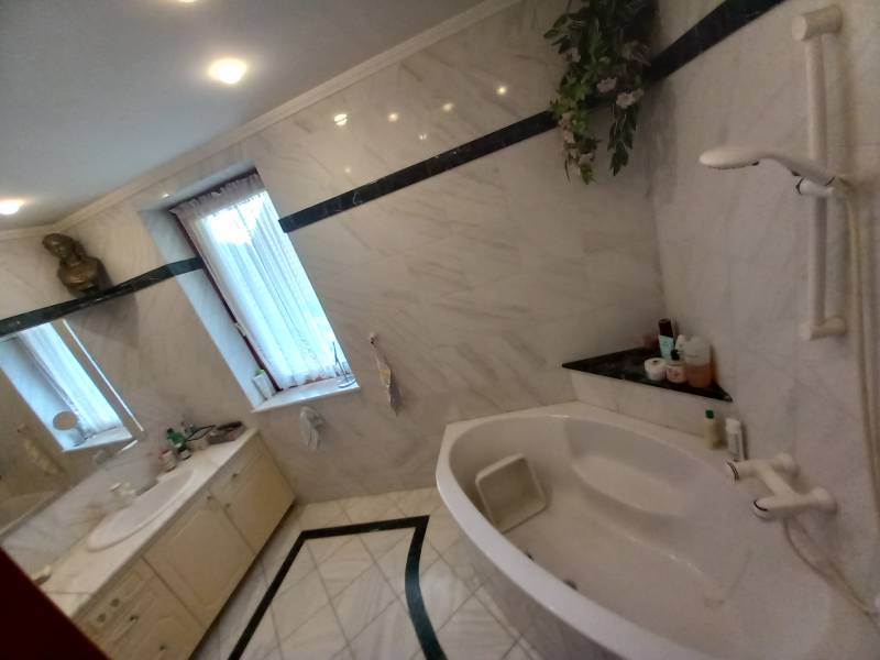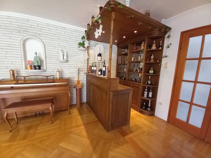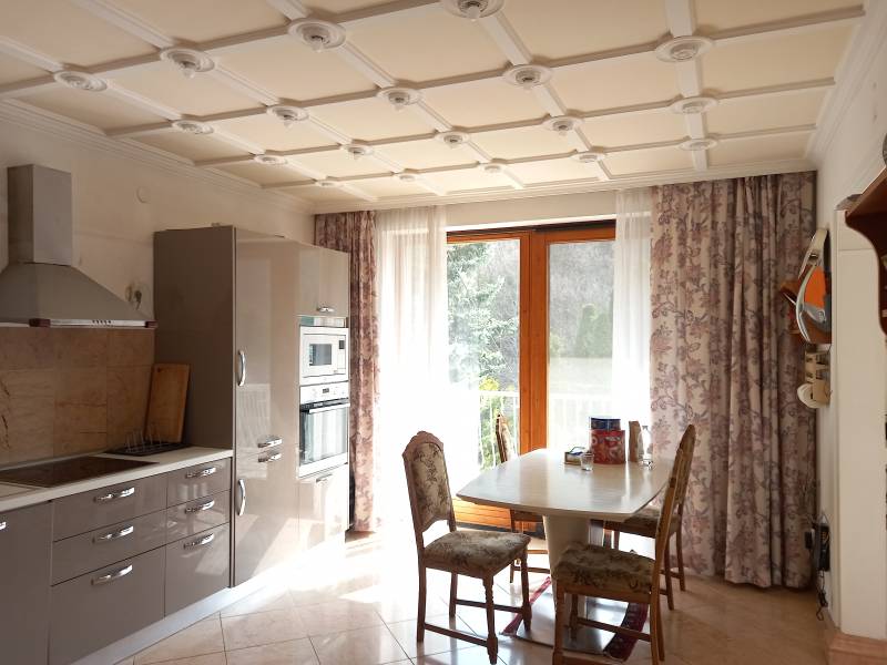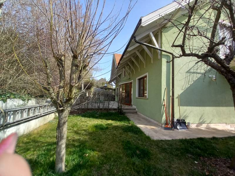 Máriaremetén jó közlekedés mellett kínálok több generációs luxus felszereltségű tágas házat megvételre.A ház intimitását az utca felől termetes, sok éves tujasor óvja!Két nagy autó számára található önálló garázs, de az udvaron még elhelyezhető néhány autó.Az alsó szinti lakás teraszáról jutunk közvetlenül a kültéri, bár fedett nagy méretű úszómedencehez.A lakás mellett találhatóak a kiszolgáló helyiségek, mint mosókonyha, kazánház, tároló, szauna.Tágas nappalijában úgyis mint a felső szinten működő kandalló emeli a hangulatot.A felső szinti lakás belső kétszintes, bár harmadikként csatlakoszik hozzá a beépített tetőtér is, mely remek \"búvóhely\" lehet gyerekekenek.A tágas nappali nyitott galáriás, mely által még nagyobbnak érezhetjük a helyiséget. A galérián könyvtár kapott helyet.A ház hátsó teraszához kapcsolódik a férfiak elvonulására helyet biztosító, bárpulttal kandallóval ellátott borospince.A telken termő gyümölcsfák adnak lehetőséget friss gyümölcsök fogyasztására.Jöjjön nézze meg ezt a sok szempontból kielégítő luxussal ellátott kellemes ingatlant.Bővebb információért hívjon, tájékoztatom! |