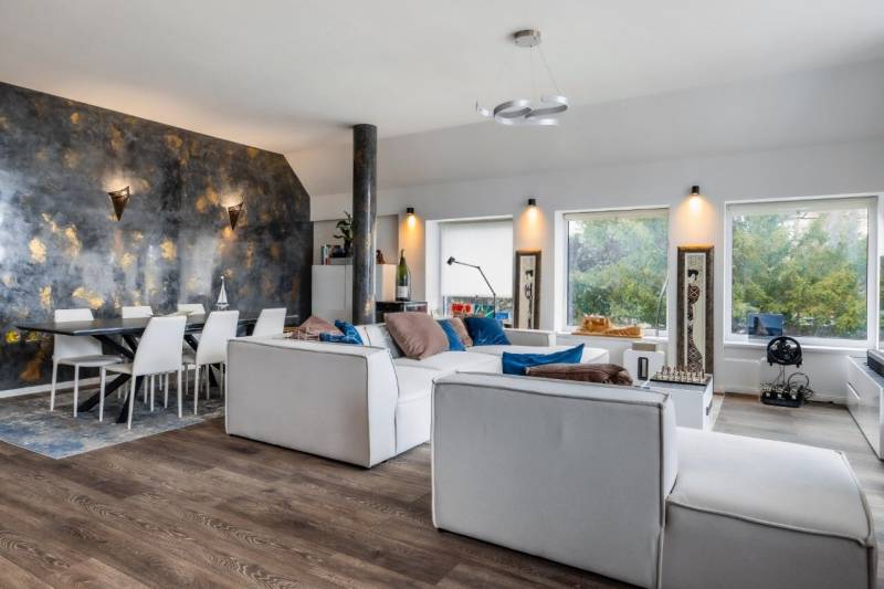3.kerület, Testvérhegyen, kiváló közlekedésénél, mégis csendes helyen,igényes házak környezetében, 3 lakásos EXKLUZÍV 2023-ban épülttársasházban, 1 emeleti, nagyon tágas, csodálatos, elvehetetlenpanorámával rendelkező nappali + 4 szobás, 3 fürdőszobás, 3 teraszosöröklakás, rengeteg extrával eladó.A lakás különlegessége 3 db nagyméretű terasz, jakuzzi kiállással, nagyontágas szülői háló (saját fürdőszobával, gardróbbal és pánikszobával).A társasház 2023-ban került átalakításra. Egy villaépületből bővítésselalakítottak ki, 1150 m2-en, 3 db nagyméretű lakást, 6 db fűtött lejáratúgépkocsibeállót a teremgarázsban, felszíni beállókat és 3 db nagyméretűtárolót.Az épület teljesen új külsőt kapott, csak a tartószerkezetekmaradtak meg. Teljeskörű átépítés történt, falak, tetőrendszer,szigetelések, vezetékek, fűtésrendszer, vízvezetékek, burkolatok,nyílászárók teljesen újak.Az épület egy 2400m2-es telken helyezkedik el.Lakás nettó négyzetméter: 197,38 m2panorámás terasz: 60, 21m2 panorámásterasz: 15,72 m2 hálószobához kapcsolódikterasz: 51,04 m2 szülői hálószobához kapcsolódikHelyiséglista:• előszoba: 19,51 m2• szoba: 17,40 m2• szoba: 12,39 m2• szoba: 19,28 m2• szoba: 29,17 m2• gardrób: 6,81 m2• gardrób/pánikszoba: 11,29 m2• mosdó: 1,67 m2• fürdőszoba: 5,66 m2• fürdőszoba: 6,82 m2• fürdőszoba: 7,3 m2• nappali-étkező-konyha: 60, 25 m2Műszaki paraméterek:- 36 cm-es tégla falazat- 15 cm vastagságú grafitos, Drywith hőszigetelés- 3 rétegű, műanyag Hofstadter, hőszigetelt nyílászárókFűtéstechnika:- Daikin hőszivattyús fűtés- padlófűtés- mennyezeti hűtésSzaniterek:RavakÁrnyékolás:zsalúzia opcionálisKonyhabútor:- Nobília, német csúcsminőségű konyhabútor- Bosch gépekkel- konyhaszigetExtrák:- Chameleon okosotthon rendszer (mobiltelefonról irányítható)- dekorfal- igényes beltéri ajtók- nagyértékű, vízálló Vynil padlóburkolatA lakáshoz tartozik: a teremgarázsban 2 db gépkocsibeálló, melynek ára : 10millió Ft/beállófelszíni beálló 2 db , melynek ára 5 millió Ft/beállótároló : 15 m2 7 millió Ftösszesen: 35 millió Ft, melyeknek megvásárlása kötelező.lakás ára: 330 millió FTösszesen: 365 millió Ft.Amennyiben az ingatlan felkeltette érdeklődését, várom hívását, akár HÉTVÉGÉN is! |