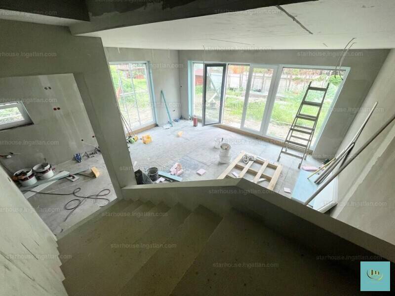 Bp. 3.kerület, Csillaghegyen, kifejezetten csendes utcában, kiváló közlekedésnél, Csillaghegy Duna felőli oldalán ,csendes családi házas övezetben eladó egy nappali-amerikai konyhás, saját, szeparált kerttel rendelkező nappali + 3 szobás ( a garázs átalakítható egy 4. szobává) , igényes kialakítású ikerfél, 20 m2-es terasszal garázzsal.A kisforgalmú, kertvárosi hangulatú utca infrastruktúrája kiváló. A közelben található a HÉV és a BKK. buszok megállói. A környéken számos bölcsőde, iskola, óvoda ,és bevásárlási lehetőség található.A Duna part és a Római part közelsége ,számos kikapcsolódási ,és sportolási lehetőséget kínál.A külön bejárattal rendelkező kert, és épületrészek egymástól szinte teljesen szeparáltak.A nappalihoz 24m2-es terasz, és külön kertrész kapcsolódik.A házhoz tartozik garázs, amely igény estén plusz szobává alakítható.Ezen kívül a ház mellett, több autó részére van beállási lehetősége is.A ház kívülről a színezésen kívül készen van. Belső munkák folynak jelenleg.Belső burkolatok, és ajtók még választhatóak, ár- értékhatárig.A lakás kb. szeptemberben költözhető.LEÍRÁS:Nappali +3szoba, igény szerint +1 szoba a garázsból kialakítható2 fürdőszobaParkolás: garázs, kerti beálló.Saját telekrész:313,5M2.MŰSZAKI LEÍRÁS:-30 cm-es falazat 10 cm-es grafitos hőszigeteléssel-10 cm-es válaszfalak-fűtés: hőszivattyú padlófűtéssel-tetőn 3 X10 cm-es kőzetgyapot hőszigetelés-3 rétegű üvegezésű, antracit szürke nyílászárók-redőnytokkal elektromos redőny előkészítése-acél bejárati ajtó-geberit wc-k-klíma alapszerelés-teljes 24 zónás riasztórendszer (nyílászárókon nyitásérzékelőkkel)-1 X32 Amper áram + H tarifa-opcionálisan Fancoil fűtésrendszer-elektromos garázskapu, elektromos kertkapu-kaputelefon-lemosható beltéri falfesték fehér alapszínben-napelem előkészítésA ház kívülről a színezésen kívül készen van. Belső munkák folynak jelenleg.Belső burkolatok és ajtók még választhatóak, ár- értékhatárig.Szeptemberi átadás.VÁROM MEGTISZTELŐ HÍVÁSÁT, AKÁR HÉTVÉGÉN IS. |