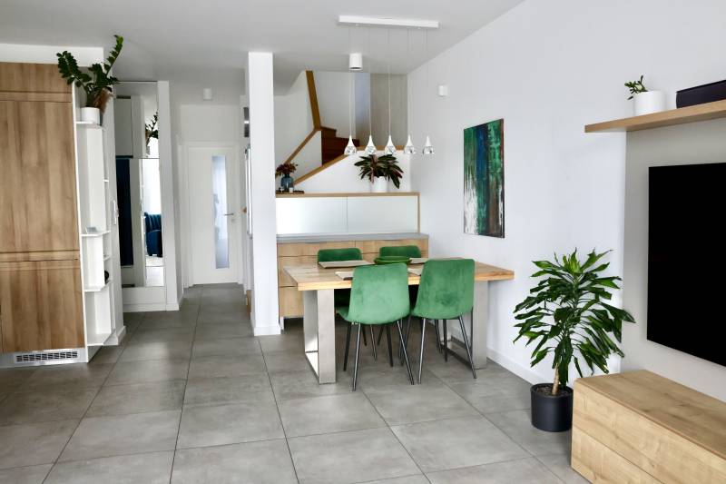 KIZÁRÓLAG NÁLUNK.NAPFÉNYBEN FÜRDŐ, PANORÁMÁS CSALÁDI OTTHON ÜRÖMÖNÜröm egyik legkedveltebb részén, az Ürömi Hütte közelében kínálunk megvételre egy 2019decemberében épült, modern, nappali + 4 szobás, élhető terekkel rendelkező, panorámás,rendkívül igényes ikerfelet, mely minden részletében a minőséget képviseli.A ház különlegessége a teljes értékű modern műszaki felszereltség, a hatalmas teraszok, a6 személyes, fával fűthető fürdődézsa, mely sókád és jakuzzi egyben, a napozóterasz,valamint a 2 autó számára kialakított fedett beálló – mindez egy gondosan megálmodott,családi környezetben.MŰSZAKI TARTALOM – A MINŐSÉG MAGÁÉRT BESZÉL:- 38 cm-es Porotherm klímatégla- 5 cm Dywith hőszigetelés- 3 rétegű, 6 légkamrás nyílászárók- Padlófűtés a teljes földszinten- 7,7 kW-os napelemrendszer (szaldós elszámolás!)- 120 literes hőtárolós víztároló- 25 cm tetőszigetelés- Okosotthon rendszer – teljes ház telefonról vezérelhető- Villeroy & Boch kád- Hüppe zuhanykabin, Hansgrohe csaptelepek, esőztetős zuhany- 30 m² praktikus pakolótér a tetőtérben- Teraszon üvegkorlátok EXTRÁK – AMIK MEGKÜLÖNBÖZTETIK A TÖBBITŐL:-Intim, részben panorámás hátsó napozóterasz- 20m2-es, panorámás terasz - 6 személyes, fával fűthető fürdődézsa - sókád és jakuzzi egyben- Automata kapu- Fedett gépkocsibeálló 2 autó részére- Zárható, 5 m²-es kerti tároló- Automata öntözőrendszer- 2 db hűtő-fűtő klíma- Rejtett tokos motoros redőnyök- Szúnyoghálók- Riasztórendszer- Beépített Whirlpool gépek- Blanko gránit mosogató- Ízléses, magas minőségű konyhabútor + reggelizőpultELOSZTÁS – FUNKCIONÁLIS, CSALÁDBARÁT TEREKFöldszint:- Előszoba beépített szekrényekkel 8,18 m2- Tágas, amerikai konyhás nappali, reggelizőpulttal 35,15-Terasz 13,93 m2- Tároló lécső alatt 2,76 m2- Hálószoba 11,16 m2- Zuhanyzós fürdőszoba 7,56 m2Emelet:-Egybenyitott hálószoba 20,20 m2 (bármikor különválasztható 2 külön szobává, 2db bejárati ajtó kerültbeépítésre)-Hálószoba 11,62 m2- Folyosó 4,10 m2- Kádas fürdőszoba 6,47 m2- Terasz 19,50 m2 HÍVJON BIZALOMMAL!A hét minden napján, reggel 9 és este 9 között, hétvégén is örömmel állok rendelkezésére.Hasonló ingatlanokért keressen minket bizalommal, vagy látogasson el a„starhouseingatlan” weboldalára.Hitelügyintézésben és értékbecslésben is segítséget nyújtunk. |