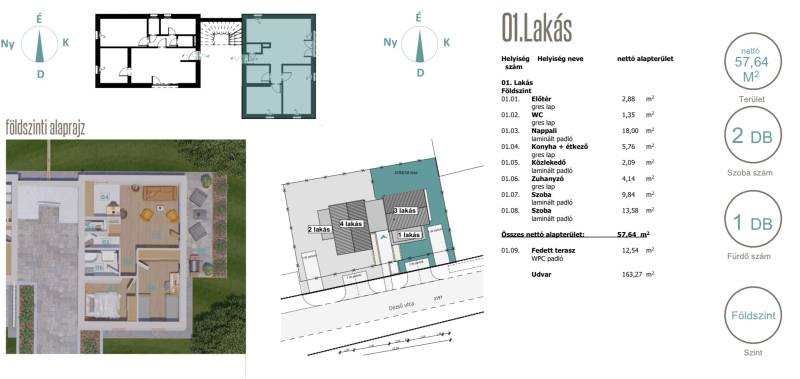 Marcali, új földszinti lakás egyedi tervezésben saját kertel!01.lakásMarcali csendes kertvárosi részén, kiváló lokációban frissen épülő 58m2-es lakás egy négy lakásos társasházban saját 163m2 kertel Eladó és foglalható!Az ingatlan hasznos alapterület 58m2 + 12,5m2 fedett terasz, és egy privát 163m2-es saját udvar tartozik hozzá. Az ingatlanban, nappali, teljesen felszerelt konyha, előtér, külön wc található... 2 külön nyÍló hálószoba, és fürdőszoba zuhannyal.A Dél-Keleti tájolásnak és a nagy ablakfelületeknek köszönhetően kifejezetten világos, barátságos és modern otthon.A fűtés és melegvÍz ellátást házközponti kondenzációs-gázkazán biztosÍtja padlófűtéssel, háromrétegű ablakok redőnnyel és szúnyoghálóval, modern szigetelés rendszer, minimális energia fogyasztás, klimatizált, modern elektromos rendszerek, led fényforrások, beépÍtett konyha és fürdőszoba. Az udvarba autóval behajtás lehetséges de rendelkezésre áll két autóbeálló is.A burkolat és járólap mintái igény szerint variálható!3 év garanciával, várható átadás a 2025 év végén várható!Keressen a részletekért!Marcali, neue Erdgeschosswohnung mit einzigartigem Design und privatem Garten!Wohnungsnummer 01In einer ruhigen Vorstadtgegend von Marcali, in ausgezeichneter Lage, in einem neu errichteten Mehrfamilienhaus mit vier Wohnungen, steht diese 58 m² große Erdgeschosswohnung mit eigenem 163 m² großen Garten zum Verkauf!Das Anwesen verfügt über eine Nutzfläche von 58 m² + 12,5 m² überdachte Terrasse und einen privaten Garten von 163 m². Das Anwesen verfügt über ein Wohnzimmer, eine voll ausgestattete Küche, einen Flur, eine separate Toilette, 2 separate Schlafzimmer und ein Badezimmer mit Dusche.Dank der Süd-Ost-Ausrichtung und den großen Fensterflächen ist es ein besonders helles, freundliches und modernes Zuhause.Für Heizung und Warmwasserversorgung sorgt ein zentraler Gas-Brennwertkessel mit Fußbodenheizung, dreischichtige Fenster mit Rollläden und Moskitonetzen, modernes Dämmsystem, minimaler Energieverbrauch, Klimaanlage, moderne Elektroanlagen, LED-Lichtquellen, Einbauküche und Bad. Eine Zufahrt mit dem Auto bis zum Hof ist möglich, es steht aber auch ein Parkplatz zur Verfügung.Die Muster der Belags- und Gehwegplatten können beliebig variiert werden!Mit 3 Jahren Garantie, voraussichtliche Lieferung Ende 2025!Suchen Sie nach Details! |