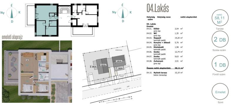 Marcali, új első emeleti lakás egyedi tervezésben!04. számú lakásMarcali csendes kertvárosi részén, kiváló lokációban frissen épülő 58m2-es első emeleti lakás 15m2-es terasszal Eladó és foglalható!Az ingatlan hasznos alapterület 58m2 + 15m2 fedett terasz is tartozik hozzá. A lakásban, nappali, teljesen felszerelt konyha, előtér, külön wc található... 2 külön nyÍló hálószoba, és fürdőszoba zuhannyal valamint háztartási helyiség és saját parkoló!A Dél-Nyugati tájolásnak és a nagy ablakfelületeknek köszönhetően kifejezetten világos, barátságos és modern otthon.A fűtés és melegvÍz ellátást házközponti kondenzációs-gázkazán biztosÍtja padlófűtéssel, háromrétegű ablakok redőnnyel és szúnyoghálóval, modern szigetelés rendszer, minimális energia fogyasztás, klimatizált, modern elektromos rendszerek, led fényforrások, beépÍtett konyha és fürdőszoba.A burkolat és járólap mintái igény szerint variálható!3 év garanciával, várható átadás a 2025 év végén várható!Keressen a részletekért!Marcali, neue Wohnung im ersten Stock mit einzigartigem Design!Wohnungsnummer 04In einer ruhigen Vorstadtgegend von Marcali, in ausgezeichneter Lage, eine neu gebaute 58 m² große Wohnung im ersten Stock mit einer 15 m² großen Terrasse. Zum Verkauf und zur Buchung verfügbar!Das Anwesen verfügt über eine Nutzfläche von 58 m² + eine 15 m² große überdachte Terrasse. Die Wohnung verfügt über ein Wohnzimmer, eine voll ausgestattete Küche, einen Flur, ein separates WC, 2 separate offene Schlafzimmer und ein Badezimmer mit Dusche sowie einen Hauswirtschaftsraum und einen privaten Parkplatz!Dank der Süd-West-Ausrichtung und den großen Fensterflächen ist es ein besonders helles, freundliches und modernes Zuhause.Für Heizung und Warmwasserversorgung sorgt ein zentraler Gas-Brennwertkessel mit Fußbodenheizung, dreischichtige Fenster mit Rollläden und Moskitonetzen, modernes Dämmsystem, minimaler Energieverbrauch, Klimaanlage, moderne Elektroanlagen, LED-Lichtquellen, Einbauküche und Bad.Die Muster der Belags- und Gehwegplatten können beliebig variiert werden!Mit 3 Jahren Garantie, voraussichtliche Lieferung Ende 2025!Suchen Sie nach Details!Marcali egy kedves kisváros kiváló lokációban a Balatontól 13km távolságra mindenhez közel… Keszthely,Hévíz, M7 autópálya 20 percen belül elérhető. Igazi rendezett Somogyi városka, dombokkal, szőlőbirtokokkal, szép kilátással a Balatoni hegyekre. Termálfürdő, megújult városközpont, éttermek, boltok,kórház, iskolák, közigazgatás… élhető település egész évben.Jól megfér egymás mellett mindenki és jelentős a német lakosság aránya is. Csendes kisváros, jó közbiztonsággal.. és ingyenes parkolással :)Sportcsarnok, konditermek, uszoda. Túrázási lehetőség kutyával vagy bringával, de a horgászok is megtalálják számításunkat.Somogyi életérzés a Balaton lábánál.P |