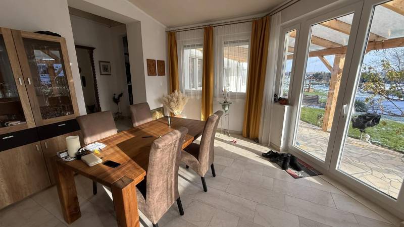 Ha valami különlegesre vágyik....Vidéken,a természet közelében...Ahol a kényelem és az elegancia találkozik!Somogy vármegye közepén,30 percre a Balatontól,Böhönyén kínálom megvételre ezt a különleges,minden igényt kielégítő polgári házat rengeteg extrával!Az ingatlan két szinten helyezkedik el,összesen öt tágas szobával,kettő fürdőszobával,egyedi stílusban,minőségi marokkói csempével és hangulatos megvilágításokkal!!Az ingatlan alsó szintjén kettő tágas hálószoba,napsütötte étkező és nappali,fürdőszoba zuhanyzóval és káddal,mosókonyha és gépesített,modern konyha található!Külön bejarattal is rendelkező lakrész elöszobával,tárolóval,ahonnan az emeletre jutunk.Itt kettő hálószoba ,különleges A vonalú beépítéssel,egy fürdőszoba és további 60 m2-es padlástér,ami könnyen beépíthető igény szerint.Központi fűtés gázkazánnal,részben padlófűtéssel,minőségi burkolatok,elegáns megoldások jellemzik.Teljesen új 5 Kw-os napelemrendszer,hogy ne legyen gond a medence hűtése vagy fűtése:)A ház igazi ékköve a gondosan ápolt kert,ahol minden a pihenést és a kikapcsolódást szolgálja:-hűthető-fűthető,fedett medence,7x3.5 méter,télen is használható!-napelemes kinti zuhanyzó-fedett kerti grillező,kemencés pizzasütő-Öntözőrendszer kút segítségével-robotfűnyíró-kerti tóAz udvaron ezen kívül műhely,fedett autóbeálló,további tárolók találhatók,hogy mindennek meglegyen a helye.A terület 1700 m2 nagyságú.Ez az ingatlan nem csupán egy ház,hanem egy vidéki életstílus,az ideális családi otthon,akár két generációnak is!Nézze meg velem,nem fog csalódni!Wenn Sie sich nach etwas Besonderem sehnen....Auf dem Land, in der Nähe der Natur...Wo Komfort auf Eleganz trifft!Im Herzen des Komitats Somogy, 30 Minuten vom Balaton entfernt, biete ich in Böhönye dieses außergewöhnliche bürgerliche Haus zum Verkauf an, das keine Wünsche offenlässt und viele Extras bietet!Die Immobilie erstreckt sich über zwei Etagen und verfügt insgesamt über fünf geräumige Zimmer, zwei Bäder, individuellen Stil, hochwertige marokkanische Fliesen und stimmungsvolle Beleuchtung!!Im Erdgeschoss des Hauses befinden sich zwei geräumige Schlafzimmer, ein sonnendurchflutetes Esszimmer und Wohnzimmer, ein Badezimmer mit Dusche und Badewanne, ein Waschraum und eine moderne, ausgestattete Küche!Ein separater Wohnbereich mit eigenem Eingang, Flur und Abstellraum, von dem aus man in das Obergeschoss gelangt.Hier befinden sich zwei Schlafzimmer mit besonderer A-Linien-Bauweise, ein Badezimmer und ein weiterer 60 m² großer Dachboden, der nach Bedarf leicht ausgebaut werden kann.Zentralheizung mit Gastherme, teilweise Fußbodenheizung, hochwertige Bodenbeläge und elegante Lösungen zeichnen das Haus aus.Eine komplett neue 5-kW-Solaranlage sorgt dafür, dass es keine Probleme mit der Kühlung oder Heizungen des Pools gibt :)Das wahre Juwel des Hauses ist der sorgfältig gepflegte Garten, in dem alles der Entspannung und Erholung dient:- beheizbares und kühlbares, überdachtes Schwimmbad, 7x3,5 Meter, auch im Winter nutzbar!- Solarduschen im Freien- Überdachter Garten-Grillbereich mit Pizzaofen- Bewässerungssystem mit Brunnen- Roboter-Rasenmäher- GartenteichIm Hof gibt es darüber hinaus eine Werkstatt, überdachten Stellplatz und weitere Lagerräume, damit alles seinen Platz hat.Die Fläche beträgt 1700 m².Diese Immobilie ist nicht nur ein Haus, sondern ein ländlicher Lebensstil, das ideale Familienheim, auch für zwei Generationen!Sehen Sie es sich mit mir an, Sie werden nicht enttäuscht sein! |
