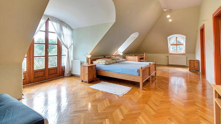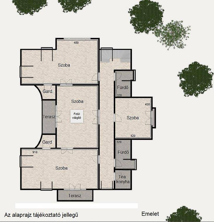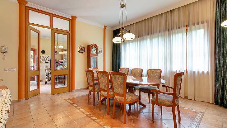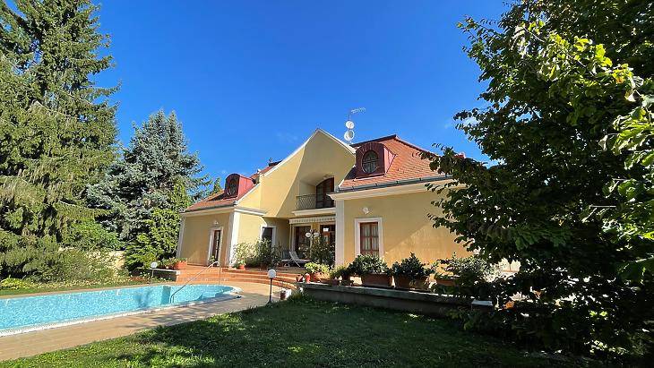 Érdligeten, elegáns és csendes környéken, természetvédelmi terület szomszédságában, 2194 nm-es telken fekvő, 1999-ben épült, parkosított kerttel rendelkező, napos, minden igényt kielégítő, szigetelt villaépület.Az ingatlant a tágas és légies terek jellemzik. A szinteket egy kényelmes méretű, világos lépcsőház köti össze.A földszint központi részen egy 80 nm-es, kandallóval rendelkező, teraszkapcsolatos nappali található, melyben egy részben szeparált olvasószekció is kialakításra került. Szomszédságában a tágas, minden igényt kielégítő kert és teraszkapcsolatos, étellifttel szerelt, teljeskörűen gépesített, konyha és az ugyancsak kényelmes méretű étkező kapott helyet.Ezen szinten egy szeparált lakrész is kialakításra került, 24 nm-es hálószobával és egy 20 nm-es, káddal és zuhanyzóval is szerelt fürdővel.A 110 nm-es terasz kényelmes teret biztosít a pihenésre és kikapcsolódásra. Itt található a 4 x12 m-es (1,5m mélységű) medence is. A jól átgondolt kialakítás része egy a medence használathoz kialakított, közvetlenül megközelíthető fürdőszoba.A gondozott, locsolórendszerrel is rendelkező kertben növény és fa különlegességek is helyet kaptak, valamint egy természetes forrás által táplált kerti tó is található.Az emeleti szinten, 4 tágas, napos hálószoba ( 30- 30- 36- és 11 nm ), 2 fürdőszoba, 2 terasz, és egy teakonyha található.A bejárati szinten (233nm) találjuk a tágas előteret, a szaunával is felszerelt sportszobát, a gépészeti helységeket, tárolókat, kamrákat és a 107 nm-es, 4 autót is kényelmesen befogadó garázst.A nyílászárók hő és hangszigetelt üvegezésű, minőségi fa ablakok és ajtók. A nagy üvegfelületeknek és az épület fekvésének köszönhetően az ingatlan körbenapozott és rendkívül jó fényviszonyokkal rendelkezik.Az épület fűtését egy Viessmann kazán biztosítja. Ezen rendszerre egy vegyestüzelésű kazán is rákötésre került, így biztosítva a fűtés 2. opcióját is.Elhelyezkedése kiváló, békés, pihentető és intim környezetet nyújt lakóinak.Az ingatlan kizárólag irodánk kínálatában elérhető. |
