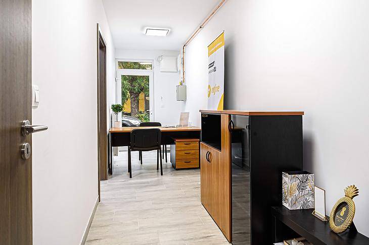 Az Újpesti Bródy Imre Gimnázium közelében, csendes mellékutcában, 2022-ben átadott, újszerű társasházban, eladásra kínálunk egy 51 nm-es irodát, fedett gépkocsi beállóhellyel. Az ingatlan 1/1-es tulajdonban van, per-teher és igénymentes. Átadási ideje: 30 nap. Közös költsége: 16.000.- Ft/hó (tartalmazza a beállóhelyet is).A társasházban korszerű víz, gáz és villanyhálózat került kiépítésre. Műanyag keretes, thermo üveges nyílászárókat és modern beltéri ajtókat építettek be. A helyiségekben laminált padlót és járólapot helyeztek le. A fűtésről és a melegvízellátásról kombi cirkókazán gondoskodik, a hőleadás lapradiátorokba történik. Jelenlegi elosztása alapján megtalálható benne egy 12 nm-es előtér, egy hűtő-fűtő klímával felszerelt 19,5 nm-es üzlettér, egy 3,7 nm-es fürdőszoba, egy kis közlekedő és egy jelenleg tárolóként kialakított 13 nm-es helyiség, ahol a konyhai kiállások előkészítésre kerültek, így könnyen átalakítható akár lakásnak is. A vételár részét képezi egy 17,5 nm-es fedett gépkocsi beállóhely (mely kötelezően megvásárolandó) az udvaron belül. Igény esetén az irodában működő cég is megvásárolható, ennek részletiről kérjük telefonon érdeklődjön. Pár perc sétatávon belül Tesco, Praktiker, iskolák, óvodák, gyógyszertár, éttermek, egyéb szolgáltatók és szolgáltatások mind fellelhetők.A közelben megtalálható a 147-es, 30-as, 196-os és a 204-es busz megállója. Újpest-központ és az M3-as metróállomás busszal 5 perc alatt elérhető. A belváros tömegközlekedéssel és autóval egyaránt rövid időn belül megközelíthető.A hirdetésben szereplő adatok tájékoztató jellegűek!Egyes ingatlanjaink esetében csere és ingatlanbeszámítás is lehetséges. Továbbá ügyfeleink részére keresünk eladó ingatlant, tulajdonrészt, vagy haszonélvezeti joggal terhelt ingatlant Budapesten és az agglomerációban. A részletekről kérjük érdeklődjön telefonon.A KÖZVETÍTÉS VEVŐINK RÉSZÉRE DÍJMENTES! |
