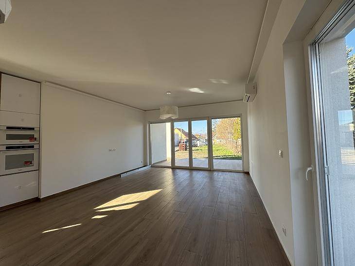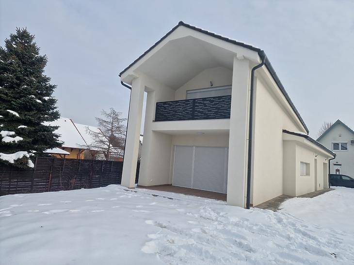 Dunakeszi egyik legcsendesebb, kertvárosi utcájában eladó egy 155 m²-es, ÚJ ÉPÍTÉSŰ, kétszintes, nappali + 3 szobás, önálló családi ház!Az ingatlan átmenő forgalomtól mentes környezetben helyezkedik el, ahol a modern építészet és a praktikus, kényelmes otthonérzet találkozik.Főbb jellemzők• Telek: 726 m²• Lakótér: 155 m², modern elosztással, két szinten• Helyiségek: nappali + 3 hálószoba, 2 fürdőszoba, mosókonyha, gardrób• Saját garázs az épületben• Fedett terasz a földszinten és az emeleten isMűszaki tartalom• Korszerű, hőszivattyús hűtő-fűtő rendszer• Padlófűtés és mennyezethűtés a maximális komfortért• Kiegészítő klímaberendezés• Prémium minőségű nyílászárók• Modern, energiahatékony szigetelés• Kulcsrakész átadás, beépített konyhabútorral |