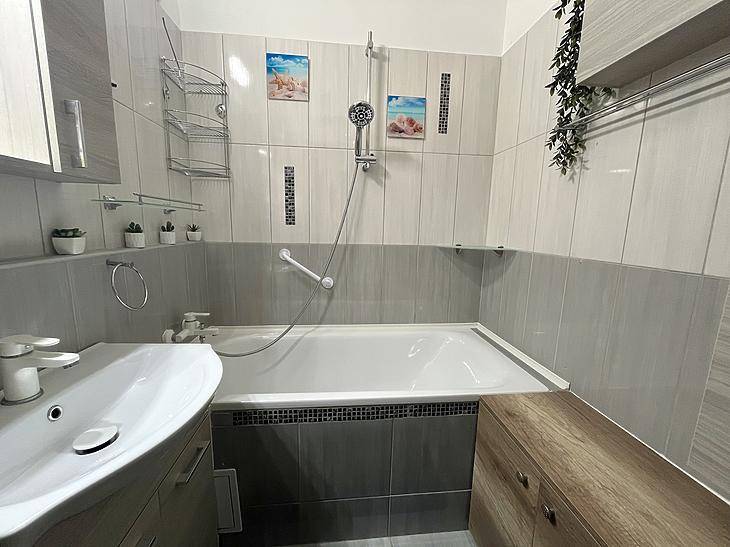Békásmegyer hegy felőli oldalán ELADÓ egy TELJESKÖRŰEN FELÚJÍTOTT, 57 nm-es, 1+2 félszobás, franciaerkélyes lakás PANELPROGRAMOS, NAPELEMES házban!A lakás a 6. emeleten található, északi és déli tájolásának köszönhetően egész nap világos, minden ablakból gyönyörű panoráma nyílik. A nappali déli fekvésű, franciaerkéllyel kapcsolódik a külső térhez, míg a konyha és a két félszoba hűvösebb, északra néző elhelyezést kapott.A lakás teljeskörű felújításon esett át: új elektromos és vízvezeték-hálózat került kiépítésre, valamint új, hőszigetelt, redőnyös nyílászárók és biztonságos bejárati ajtó került beépítésre. A fűtést korszerű, egyedi mérős és szabályozható radiátorok biztosítják.A falak szépen gletteltek, festettek, több helyen díszítő tapétával kiegészítve, a helyiségek eltérő, harmonikus színvilággal rendelkeznek. A szobákban laminált parketta található, míg a konyha, közlekedő és vizeshelyiségek új járólappal burkoltak.A fürdőszoba modern, új akrilkádat és ízléses burkolatokat kapott, a mosógép kiállása pedig a gardrób eredeti helyén került kialakításra. A konyha is teljesen megújult: új burkolatok, modern konyhabútor, beépített mosogatógép és egy kényelmes bár/reggeliző pult teszi teljessé a teret. A nappaliból egy külön bejárható, tágas gardrób lett leválasztva, amely praktikus tárolási lehetőséget biztosít. A társasház rendezett, panelprogramos, külső hőszigetelést és napelemes rendszert kapott, amely hozzájárul az alacsony rezsiköltségekhez és a környezettudatos működéshez.Igényesen felújított otthon, kiváló elhelyezkedéssel és remek kilátással.Környékről:Közelben minden olyan szolgáltatás megtalálható amire szüksége lehet a mindennapokban (kisebb élelmiszer boltok, piac, éttermek, gyógyszertárak). Gyerekes családoknak nagyon ideális hiszen játszóterek, Óvoda, Iskola, Egyetem van a közelben.Tömegközlekedés szempontjából is tökéletes hiszen pár perc sétára található számos buszmegálló, illetve a H5-ös hév.Ha pedig kikapcsolódásra vágyik sétatávra elérhető a Duna part, ahol számos lehetőség van kikapcsolódni, sétálni, szórakozni.PARKOLÁS A HÁZ ELŐTT ÉS KÖRNYÉKÉN INGYENES.FINANSZÍROZÁS:Banki finanszírozással is megvásárolható, melyben irodánk ingyenes tanácsadással áll rendelkezésükre! Az ingatlan Otthon Start hitellel is megvásárolható.VEVŐINK RÉSZÉRE A KÖZVETÍTÉS DÍJTALAN! |