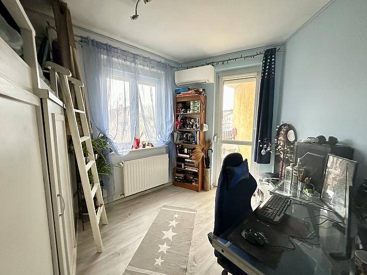 Vác kedvelt városrészében, Deákváron kínálunk eladásra egy világos és tágas, 2 és fél szobás lakást két erkéllyel, amely ideális választás lehet családoknak. A lakás a társasház 3. emeletén helyezkedik el, praktikus elosztással: előszoba, étkező, konyha, két külön nyíló szoba, valamint egy félszoba amiben egyedi tervezésű és kivitelezésű tágas galériaágy van, alul gardróbbal és a kisebb erkély tartozik hozzá. A nappaliból nyílik a nagyobb erkély, továbbá a lakás része egy fürdőszoba, külön WC és egy spejz is. A közművek (víz, villany, gáz) egyedi mérőórákkal rendelkeznek. A lakáshoz tartozik saját tároló.Az északnyugati fekvésű lakás egész nap kellemesen világos. Fűtéséről kondenzációs cirkó gondoskodik, kiegészítve hűtő-fűtő klímával, a félszobában pedig infra padlófűtés növeli a komfortérzetet. A nyílászárók dupla üvegezésű, thermo műanyag ablakok, melyek jó hő- és hangszigetelést biztosítanak.A társasházhoz tartozik egy csak lakók által használható parkolórész, ami nagy előnyt jelent a mindennapokban. A lakástól mindössze 5 perc sétára bolt és buszmegálló is található, ahonnan a belváros gyorsan és kényelmesen megközelíthető.Kérdésével, illetve megtekintési szándékával keresse irodánkat. Hitelre lenne szüksége új otthonának megvásárlásához, profi hitelközvetítő kollegáink állnak rendelkezésükre.Amennyiben eladásra lenne szükségük a vásárláshoz, irodánk egész Vác területén ingyenes értékbecslést vállal. |