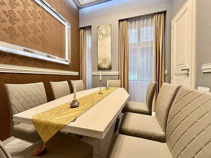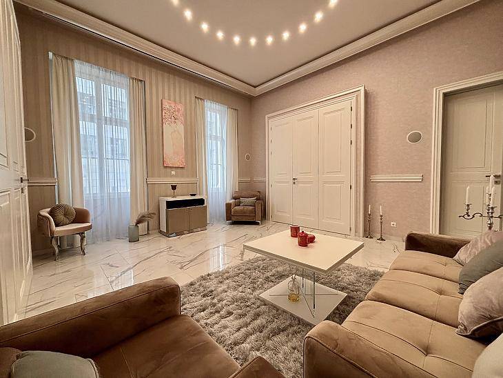 Budapest I. kerületének egyik legértékesebb részén, a hangulatos Vízivárosban, mindössze két perc sétára a Clark Ádám tértől kínálunk megvételre egy kivételes adottságokkal rendelkező, teljeskörűen felújított luxuslakást. Az ingatlan tulajdoni lapon 79 nm-es, azonban a valós, hasznos alapterülete ennél nagyobb, így a lakás tényleges mérete a mindennapi használat során jóval tágasabb érzetet nyújt.A felújítás során az eredeti polgári karakter megőrzése elsődleges szempont volt: a monumentális kétszárnyú ajtók, a klasszikus arányok és a nagypolgári belmagasság elegáns alapot adnak a modern, luxus szintű kialakításnak. A lakás két külön hálószobával rendelkezik, mindkettő saját fürdőszobával, a tágas nappali pedig beépített házimozi rendszerrel lett felszerelve, amely exkluzív otthoni élményt biztosít.A prémium anyaghasználat, az aprólékosan megtervezett részletek és az igényes belsőépítészeti megoldások minden ponton a kompromisszummentes minőséget képviselik. Az elhelyezkedés páratlan: történelmi környezet, kiváló közlekedés és a város ikonikus pontjai karnyújtásnyira. Az ingatlan ideális választás lehet elegáns városi otthonnak, reprezentatív rezidenciának vagy értékálló befektetésnek.Ez a lakás valódi ritkaság azok számára, akik a polgári eleganciát és a modern luxust Budapest egyik legjobb lokációjában keresik. |
