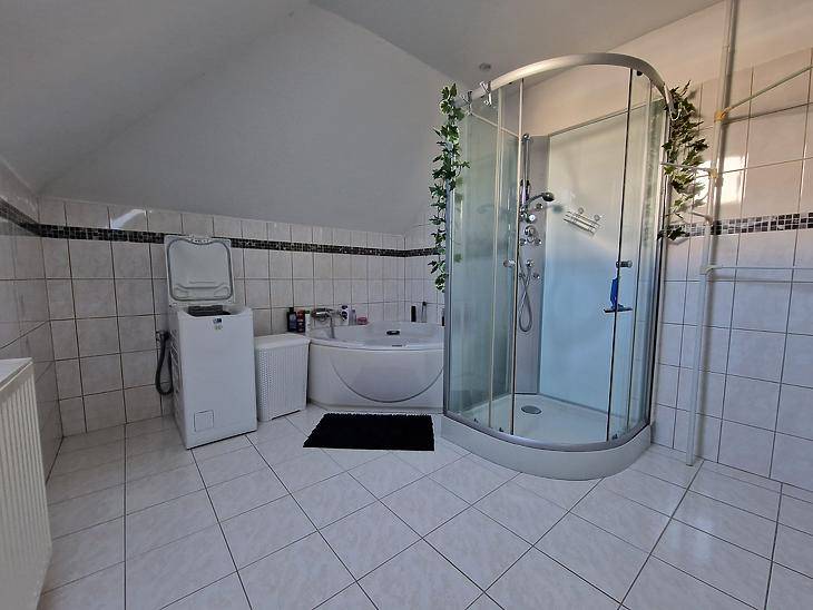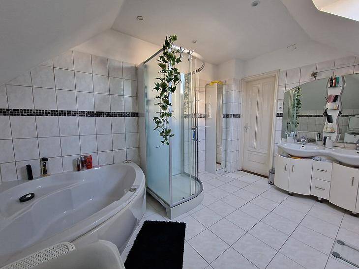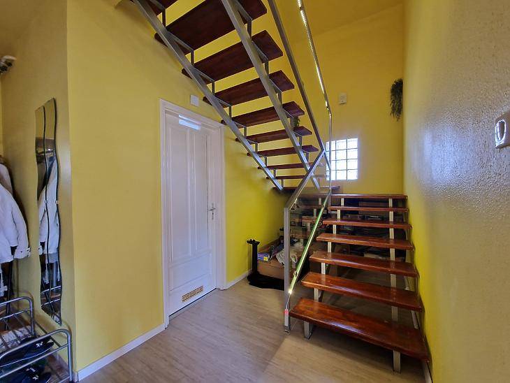 Dunakeszi Révdűlőben eladó egy jó adottságú, 2005-ben épült ikerházfél.Az ingatlan 172 nm összterületű, ebből 139 nm lakótér. A kialakítás kifejezetten jól használható: négy hálószoba, amerikai konyhás nappali, gardrób, két fürdőszoba + külön WC biztosít elegendő teret akár nagyobb családnak vagy több generációnak is.A fűtésről és meleg vízről karbantartott gázkazán gondoskodik. Az elmúlt években az ingatlan több ponton felújításon esett át:automata redőnyök, klíma, padlóburkolatok cseréje.A házhoz emeleti erkély, hátsó terasz, beépített utcafronti terasz, valamint garázs tartozik. A ház előtt viacolorral burkolt parkoló van kialakítva, amely két autó számára kényelmes megoldást nyújt.A 200 nm-es öntöző rendszerrel ellátott kert bőven ad teret a szabadban eltöltött időhöz. Az öntöző rendszert fúrt kút táplálja.Csendes, családi házas környezet, jó megközelíthetőség:buszmegálló 8 perc, Duna-part 5 perc, Orvosi rendelő, és bevásárlási lehetőség is pár perc séta távolságra megtalálható.Amennyiben az ingatlan megvásárláshoz hitelt szeretne igénybe venne, és vagy a saját ingatlanát eladni, jelezze felénk, hogy segíthessünk a gördülékeny ügyintézésben. |