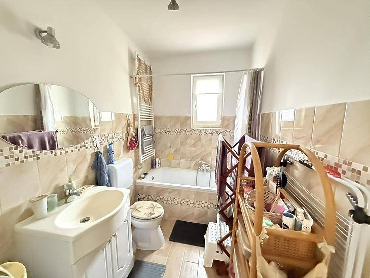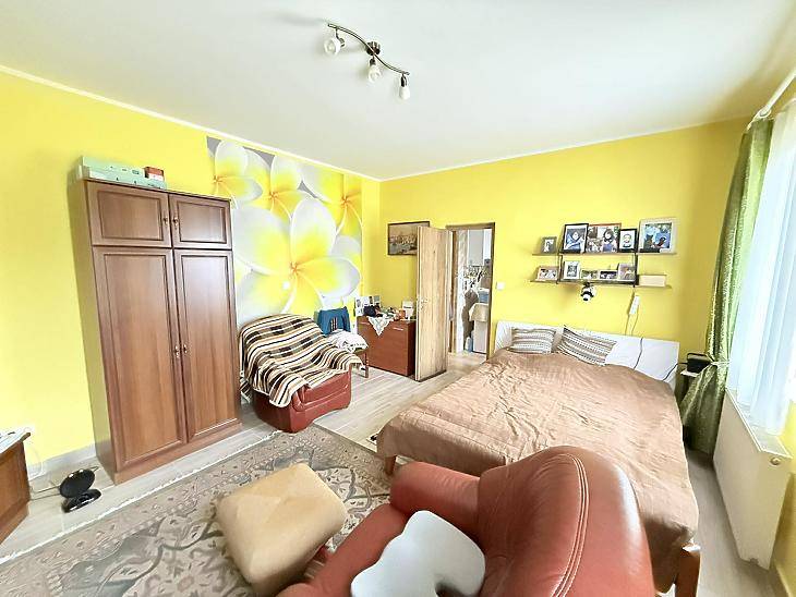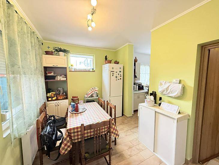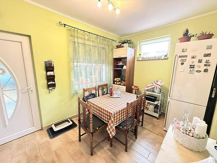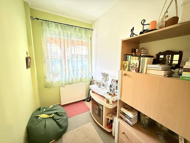 A XVI. kerület kedvelt részén, Sashalmon, családi házas övezetben kínálunk megvételre egy 57 nm-es, 2 szobás, gardróbos tégla lakást, amelyhez kertkapcsolat kialakításának lehetősége tartozik.A kert jelenleg még nem megközelíthető közvetlenül a lakásból, azonban az egyik szobában teraszajtó beépítésével közvetlen kijárat alakítható ki a kert irányába.Az ingatlanrólAz 1960-ban épült, szigetelt, fafödémes, cserépfedésű ház nyugodt, családi házas környezetben található. A lakás világos, jó elosztású, minden helyisége praktikusan használható.A fűtést és a meleg vizet kondenzációs kazán biztosítja, a nyílászárók korszerű, műanyag, hangszigetelt kivitelűek. A burkolatok jó állapotú járólapok, a vizes helyiségek rendezettek. Az ingatlan 2020-ban teljes körű műszaki felújításon esett át, melynek során megtörtént a víz- és villanyvezetékek cseréje, valamint a kazán cseréje is.Bővítési lehetőségek:A tetőszerkezet kiváló alapot nyújt további lakótér kialakítására – akár szobák beépítésére, akár többgenerációs otthon létrehozására.A kert jelenleg közös használatú, a telekmegosztási szerződés elkészülte után pedig lehetőség nyílik annak egy részét saját használatú kertként leválasztani.Elrendezés• előszoba• étkező• konyha• 2 szoba• gardrób• fürdőszoba mellékhelyiséggel ParkolásA telken belül megoldható.KözlekedésPár perc sétára elérhető több buszjárat és a H8–H9 HÉV(44, 45, 92, 92A, 176E, 276E, 908).FinanszírozásAz ingatlan támogatott hitelre is megvásárolható, díjmentes bankfüggetlen tanácsadással. Irányár: 71,9 millió FtVevőink részére a közvetítés díjtalan A hirdetésben szereplő adatok tájékoztató jellegűek. |