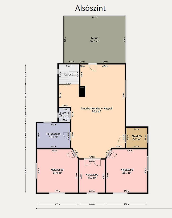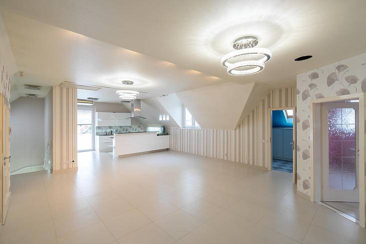 Az ingatlan tégla szerkezetű, beton födémmel, külső falai szigeteltek. A ház alapterülete 319 m², amelyből a földszint 169 m², emelet 150 m². A belső terek tágasak, világosak, harmonikus arányokkal. A lakótér központja a 67 m²-es amerikai konyhás nappali, amely elegáns megjelenésével ideális a mindennapi családi élethez és a reprezentatív vendéglátáshoz egyaránt.Az emeleti szinten 3 hálószoba, egy külön gardróbszoba, egy fürdőszoba, valamint egy külön WC kapott helyet. Az ingatlan összesen 7 szobával rendelkezik, így nagyobb család vagy többfunkciós használat esetén is kiváló választás.