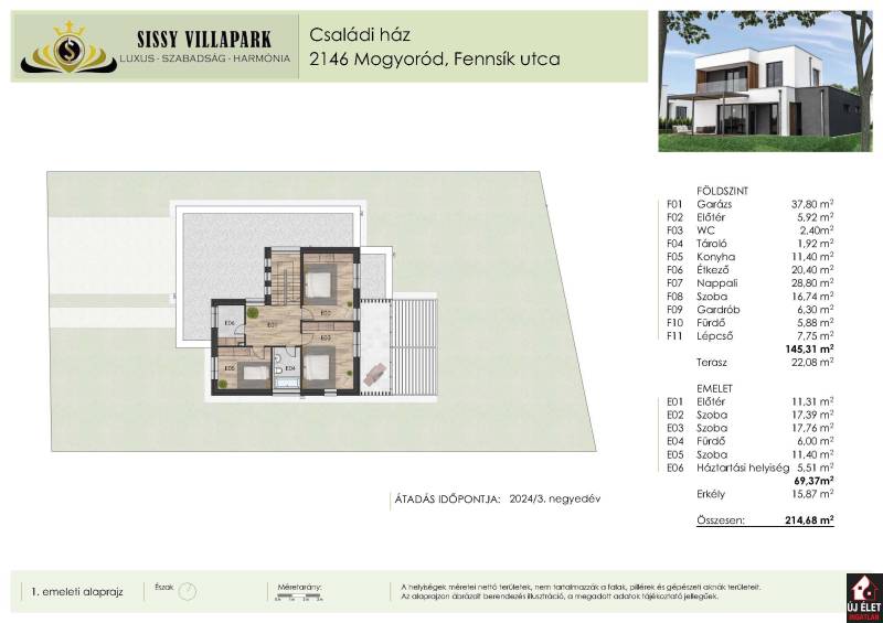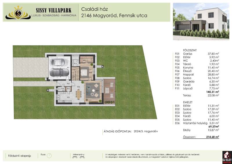 A Sissy Villaparkban még több új építésű családi házat és ikerházat tudok önnek ajánlani.(Van ami már elkészült és van olyan, ahol még ön választhatja ki a burkolatokat, szanitereket, ajtókat, stb.)Ebben a hirdetésben az alábbi ingatlant ajánlom önnek:MÁR 65%-BAN ELKÉSZÜLT! A VIDÉK ÉS A VÁROS TÖKÉLETES ÖTVÖZETE LUXUSKIVITELBEN – a SISSY VILLAPARKBAN - MOGYORÓDON!!! Ha kéri, elküldöm Önnek emailben a Villaparkban lévő összes eladó ingatlan részletes adatait könnyen átlátható formában !!!Kb. 15 db eladó ház (önálló családi ház, illetve ikerház), néhány lakás, és néhány üzlethelyiség közül tud még választani ebben a Villaparkban.EBBEN A HIRDETÉSBEN KONKRÉTAN EZT AZ INGATLANT AJÁNLOM ÖNNEK:A ház belső alapterület: 204,37 m2Teraszok: 32 m2Lakás+terasz (1/2): 220,37 m2Nappali + 4 hálószobaTelekrész: 740 m2Fűtés: HŐSZIVATTYÚEnergetikai besorolás: AAz ingatlan TÓPARTI.EGY VARÁZSLATOS TÓ KÖRÜL ELHELYEZKEDŐ, csodás szépségű környezetben, a Villaparkhoz tartozó kiserdő mellett, gyönyörű modern, letisztult, prémium minőségben épülnek a házak.Ebben a természetközeli, idillikus környezetben, ahogy kisétál például a magánerdőből, 2024 végén, már az itt megépülő ÜZLETHÁZ-ba is besétálhat, ahol megveheti a mindennapi élelmiszert, vásárolhat a pékségben, beülhet a kávézóba, vagy egyéb teendőit is elintézheti. Ki sem kell mozdulni hozzá a körbekerített, védett Villaparkból!A Viacolor burkolatú, kandeláberekkel szegélyezett, rendezett kis zsákutcácskákban, illetve közvetlenül a tóparton, kb. 100 db telekre épülnek házak, illetve néhányra lakások, aminek kb. 60-70%-ában már laknak is. Nagy teraszos, HATALMAS ABLAKFELÜLETEKKEL, sokszor óriási nappalikkal rendelkező, új építésű házak közül választhat, akár (fűtött) garázzsal.Az amerikai stílusban épülő Villapark tökéletes harmóniát tükröz, és az is fantasztikus érzés, hogy a nappaliban és a szobákban ülve, az óriási üvegfalaknak köszönhetően, olyan, mintha a ház belső terei össze lennének nyitva a külső térrel, a napsütéses természettel.A GYEREKEK SZÁMÁRA EZ EGY PARADICSOM. Rollerezhetnek a tó körül, élvezhetik a kiépített játszóteret, lógathatják a lábukat a stégeken, vagy bújócskázhatnak a kiserdőben.A felnőttek a tó körüli sétányon sétálgathatnak a babakocsival, és a reggeli futás is sokkal élvezetesebb ebben lenyűgöző környezetben.A gyönyörű, nyugodt Villaparkban, választhat akár a kislakásoktól kezdve, a domboldalon, a tóra teljes panorámával, és D-Ny-i teraszokkal rendelkező, 200 nm feletti, önálló családi házakig.A lakásokat és házakat az Ön által választott burkolatokkal, szaniterekkel, beltéri ajtókkal fejezik be.Autóval az M3-as autópályán közelíthető meg. A Mogyoród-Szadai kihajtó közelében található....és ha vannak családtagok, akik nem vezetnek autót, akkor a sétatávolságra lévő HÉV-vel (Szentjakab megálló), 35 perc alatt az Örs vezér téren, vagy a másik irányban 10 perc alatt Gödöllő központjában vannak.CSOK, ill. egyéb családi támogatás a lakásokra, ill. a házakra is igénybe vehető. Ezekkel a támogatásokkal kapcsolatosan, és hitelben is tudunk Önnek segíteni.Ez a környék Erzsébet királyné egyik kedvenc helye volt. Gyakran járt ide a Gödöllőn töltött hónapjai alatt. Ezért is lett Sissy Villapark a neve.Ha Ön eljön megnézni, ígérem, hogy Önnek is az egyik kedvenc helye lesz!Hívjon, amíg még vannak szabad házak!Itt láthatja a Villaparkban MÉG AKTUÁLISAN ELADÓ önálló családi házakat és ikerházakat:http://ujeletingatlan.ingatlan.com/ingatlanaink/elado+haz+mogyorodItt láthatja a Villaparkban eladó lakásokat:http://ujeletingatlan.ingatlan.com/ingatlanaink/elado+lakas+mogyorod...és itt az eladó üzlethelyiségeket:http://ujeletingatlan.ingatlan.com/ingatlanaink/elado+uzlethelyiseg+mogyorodHa érdekli, hogy melyik ingatlan mikorra készül el, mikor költözhetne be (vagy egyéb részletek), azt szívesen elküldöm akár emailben is,illetve ha bármilyen kérdése felmerül, vagy szeretné megnézni élőben a Villaparkot, és benne az Önnek szimpatikus ingatlanokat, illetve referenciaházakat, örömmel megmutatom.Kérem, jelezze!Kérem, nézze meg a videót is!Amennyiben még 2023-ban vásárol ingatlant, akkor igénybe veheti a CSOK-ot, az ehhez kapcsolódó illetékmentességet, és a CSOK hitelt is.2024.01.01-től erre nem lesz lehetőség. (Csakis a falusi CSOK marad meg, aminek a felhasználására Pest megyében szinte nincs is lehetőség.) |