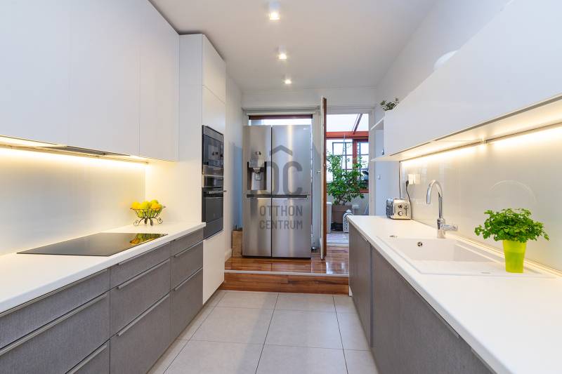 Penthouse jellegű, panorámás luxuslakás Újlipótvárosban – közel 60 m²-es körterasszal, wellness funkciókkalÚjlipótváros egyik legexkluzívabb pontján,egy csodálatos lakóparkban eladó egy 9. emeleti, penthouse jellegű, kivételes adottságokkal rendelkező 86 m²-es, nappali + 2 hálószobás, duplakomfortos luxuslakás, amelyhez közel 60 m²-es, körbejárható panorámaterasz tartozik.Ez az ingatlan valóban a nyugalom szigete: zavartalan kilátás a Budai-hegyekre, nyugati tájolás, egész nap fényárban úszó terek.Főbb paraméterek- 86 m² lakótér + ~60 m² körterasz- Penthouse jelleg, 9. emelet- Nappali (34 m²) étkezőrésszel- 2 hálószoba (14 m² és 12 m²)- 2 teljes értékű fürdőszoba + WC- Modern, liftes társasház- Dupla komfort- Alacsony rezsiTerasz & életérzés- Minden helyiségből közvetlen kijárat a teraszra- Grillezési lehetőség- Zárt wellness terasz: - szauna - zuhanyzó - futópad- Ideális pihenésre, vendégfogadásra, városi „mini wellnessként”Lakópark előnyei- Gondozott, parkosított belső kert- Játszótér, padok, szökőkút- Sétányok, zöldfelületek- 24 órás portaszolgálat- Biztonságos, rendezett, családbarát környezetElhelyezkedés – minden gyalog elérhető- Duna-part, Pozsonyi út- Margitsziget- Metró, troli, kiváló tömegközlekedés- Iskola, óvoda, bölcsőde- Bevásárlási lehetőségek, orvosi rendelőTovábbi információk- Az ingatlan szépen berendezett, a teljes bútorzat a vételár részét képezi- Azonnal költözhető, újszerű állapot- Tehermentes, 1/1 tulajdonÁr- Lakás: 248 millió Ft- Teremgarázs-beálló: +14 millió Ft- Önálló, zárható tároló: +3 millió FtEz az ingatlan ideális választás azok számára, akik kompromisszummentes városi luxust, panorámát, nagy teraszokat és valódi nyugalmat keresnek Budapest egyik legjobb lokációjában.Megtekintés kizárólag előzetes egyeztetés alapján lehetséges. |