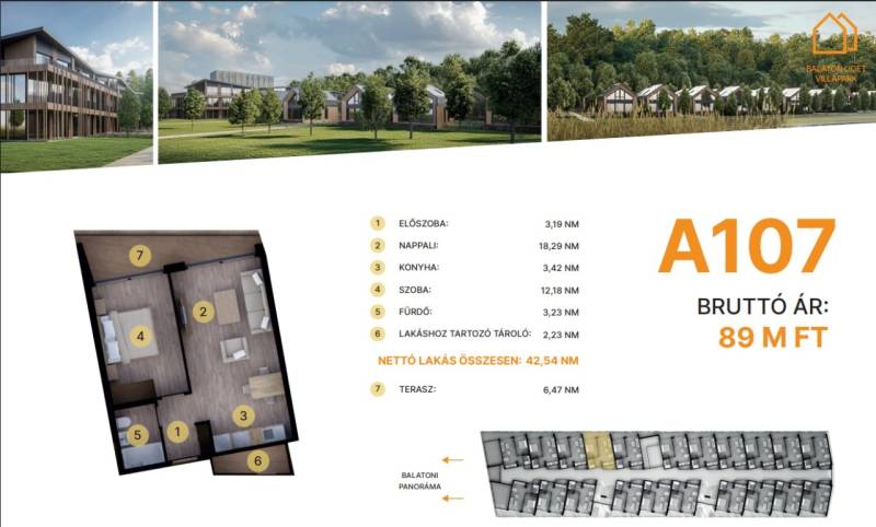 Balatonföldvár: Balatonföldvár fontos turisztikai célpont, nemcsak a magyarok, hanem más európai országok turistái számára is, természeti szépségei (például a löszhegy és a nagy virágos parkok), továbbá történelmi örökségei (például a kelta ösvény, a régi kúriák és villák) miatt számtalan szabadidős lehetőséget, valamint számos vízi sportot (vitorlázás, szörfözés, horgászat, evezés)Balaton liget willapark:Lakások száma: 56 db.Alapterület: 28-56 m².A földszinti lakásokhoz saját, privát kert tartozik.A földszinten 21 lakás található, 48–110 m² közötti alapterülettel.Az első emeleten további 21 lakás érhető el, 47–75 m² közötti méretben.A második emeleten 17 lakás kapott helyet.A lakásokhoz önálló tárolóhelyiségek tartoznak, amelyek a közös folyosóról közelíthetők meg.Környezettudatos építő anyagokA+ energetikai besorolásFelszíni parkoló: 6.350.000. Ft.Modern letisztult építészet, tömegformálás, Balatonra tájolt panorámás teraszok.Apartmanlakás - alapfelszereltség:100% tömör CLT Ausztriából.20 cm kőzetgyapot hőszigetelés.Fa hőszigetelő nyílászárók 3 rétegű üvegezéssel,tölgyfurnér melegburkolat.Porcelán greslap hidegburkolat, villeroy fürdőszoba szaniterekpadlófűtés.Levegős hőszivattyú (VRV splitklíma), 50kW társasházi napelemrendszer, elektromos redőny, szúnyogháló beépített bútoroksaját terasz.A 107. lakás.A további kérdésekkel és a megtekintéssel kapcsolatban kérem keressen a megadott mobil számon. |