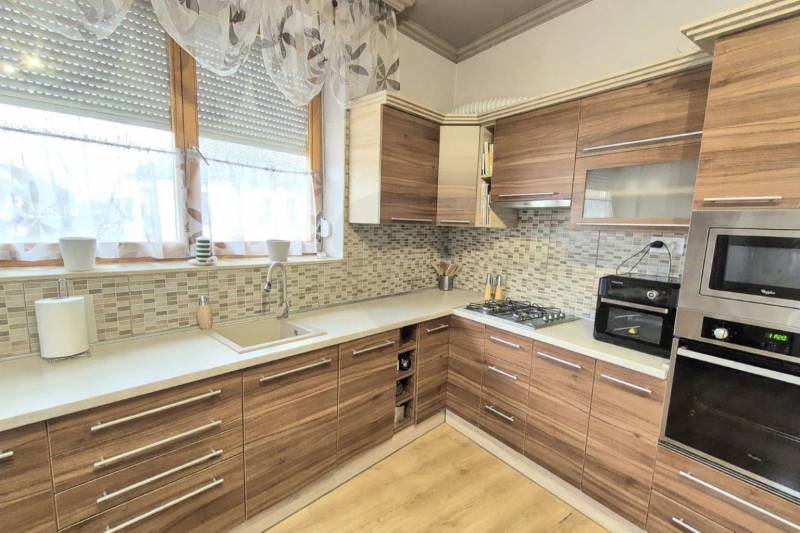 Baján kedvelt részen, a Belváros szélén, eladó egy 143 nm-es, kétszintes, téglaépítésű családi ház. Az ingatlan 1985-ben épült. A földszinten tágas nappali, beépített konyha, hálószoba, fürdőszoba, valamint mosókonyha biztosítja a kényelmes mindennapokat. Az emeleten két hálószoba, fürdőszoba és egy tároló került kialakításra. Az egyik szobából egy 4 nm-es erkély nyílik.A szobák laminált burkolattal rendelkeznek, a ház állapota kiváló. Műszaki felszereltségét tekintve az ingatlan 12 cm-es vastagságban hőszigetelt, hőszigetelt fa nyílászárókkal, új kondenzációs gázkazánnal, valamint riasztórendszerrel ellátott, ami energiatakarékos és biztonságos működést garantál.A házhoz garázs is tartozik, valamint egy 15 nm-es terasz, grillező, amely tökéletes helyszíne lehet családi ebédeknek, baráti összejöveteleknek vagy egy nyugodt reggeli kávézásnak. A kellemes, otthonos környezet ideális teret biztosít a közös pillanatokhoz és a mindennapi kikapcsolódáshoz.Ideális választás családok számára, akik nyugodt környezetben, mégis jó elhelyezkedéssel keresnek minőségi otthont.Irányár: 88.000.000 Ft |