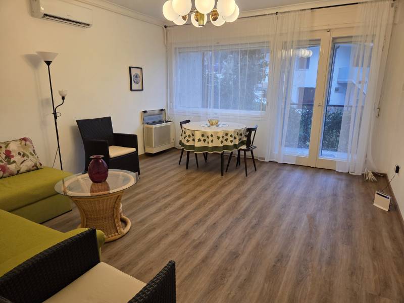 A XII. hegyoldalában a Kissvábhegy egyik legszebb utcájában az Álom utcában kiadó ez az 57 m2-es 2 szobás bútorozott, gépesített szép lakás.Az ingatlan természetvédelmi terület közvetlen szomszédságában van, háromszintes 12 lakásos téglaépítésű ház földszintjén.2 terasza van, a nyílászárók redőnnyel felszereltek, és tartozik az ingatlanhoz egy zárható pincerész is.Bútorzat:sarok ülőgarnitúra, 2 fotel, dohányzó asztal, étkező asztal székekkel, 2 db. heverő, beépített szekrények,Gépesítés: 2 db.inverteres légkondicionáló berendezés, gázkonvektor, kerámialapos tűzhely sütővel, mikró, mosogatógép, hűtőszekrény mélyhűtővel, Ariston intelligens vezérlésű villanybojler.Az ingatlan fűtését a nappaliban inverteres légkondicionáló + gázkonvektor biztosítja, a konyhában elektromos fűtőpanel, a fürdőszobában elektromos radiátor biztosítjaA közös költség 12.000 Ft.Az Álom utcában a parkolás ingyenes, és bőven van parkolóhely.A közlekedés kitűnő, a Svábhegy és a Normafa felé tartó buszokkal - 21, 21A, 212 - is egyszerű eljutni Kissvábhegyre, ahol a Pethényi útnál kell leszállni, ahonnan pár perces sétával elérhető az ingatlan.Gyönyörű helyen lévő kis gyöngyszem a Kissvábhegyen! |