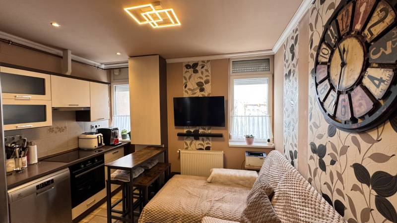 Eladó Debrecen szívében, a Belvárosban egy szép állapotú, világos, napfényes, pár évvel ezelőtt teljes körűen felújított és átépített nappali+ 2 szobássá alakított, klimatizált 43 nm-es 4. emeleti lakás, amely ideális választás azok számára, akik saját otthonra vagy befektetési lehetőségre vágynak. Az ingatlan főbb jellemzői:- Fűtés klímával és gáz cirkó rendszerrel - radiátoros hőleadókkal- megoldott-megbízható, gazdaságos működéssel.- Nyílászárók: többrétegű műanyag nyílászárók, redőnnyel és rovarhálóval felszerelve.- Villamoshálózat: felújított, biztonságos, mai igényekhez igazítva, 1 fázis 25 Amper.- Két Samsung márkájú hűtő-fűtő klíma: a maximális kényelem érdekében a meleg nyári napokra is felkészült az otthon.- Érintőkapcsolók- Wifiről is vezérelhetőek.- A lakásra belülről 10 cm kőzetgyapot szigetelés, a házra kívülről 15 cm szigetelés került-kiváló a hőtartó képesség. A külső szigetelés teljes költsége kifizetve.- A riasztó- rendszer növeli a biztonságot.- A teljes lépcsőházban felújításra került a villamoshálózat.A lakáshoz tartozik egy 2 nm nagyságú önálló pince és egy közös biciklitároló helyiség. A lakásban található gépek megegyezés tárgyát képezik.Az ingatlan elhelyezkedése ideális, a város központjában található, így az élelmiszerboltok, éttermek és szórakozási lehetőségek karnyújtásnyi távolságban elérhetőek. A közlekedés szempontjából az ingatlan lokációja kiemelkedő, villamos- és a buszmegálló, vasútállomás pár perces sétával megközelíthető. Ez a belvárosi lakás nem csupán otthon, hanem egy befektetési lehetőség is, amely garantáltan értéket képvisel a jövőben.Tökéletes lehetőség fiatalok kezdő lakásaként, de a bérbeadás is kiemelkedő hozamot biztosít.Amennyiben hirdetésünk felkeltette érdeklődését, várjuk hívását a hét minden napján! |