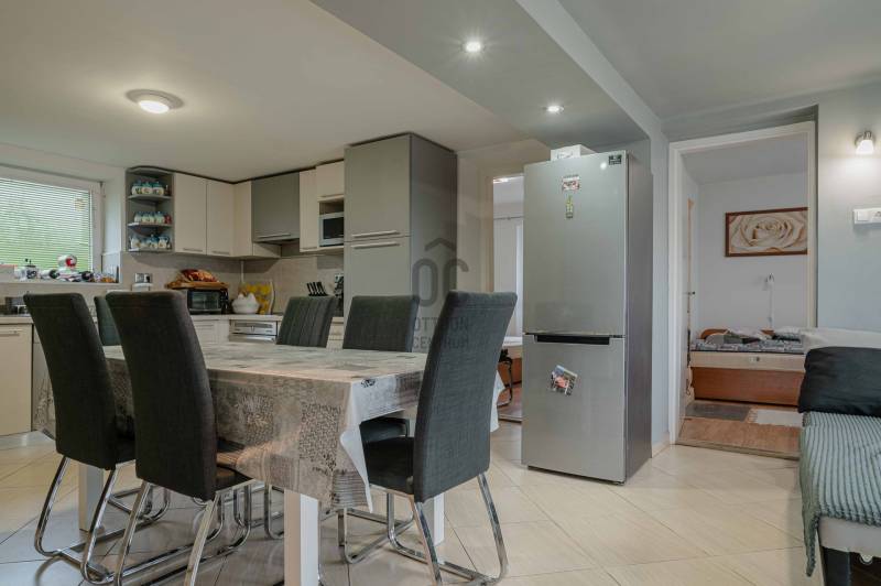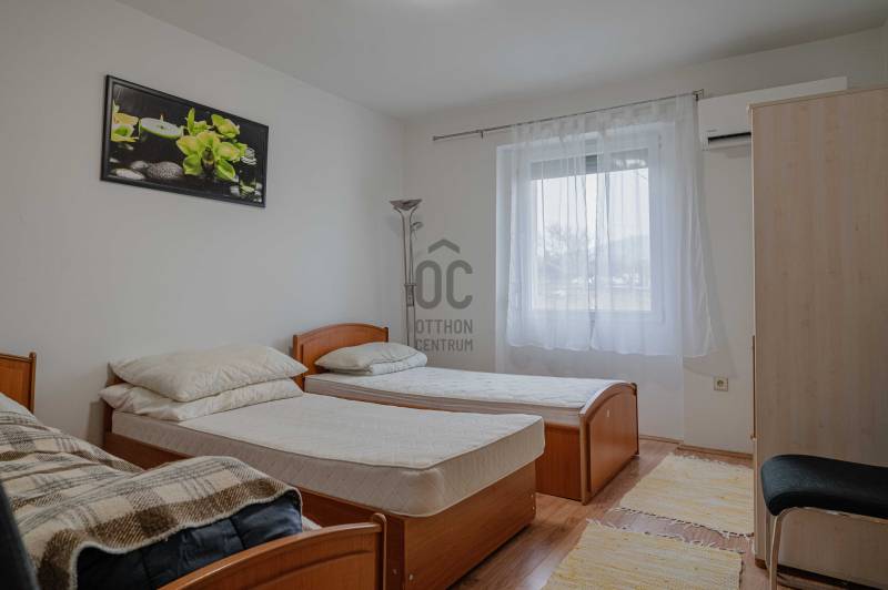 Eladásra kínálunk egy rendkívül sokoldalúan hasznosítható, kivett lakóház besorolású, hitelezhető ingatlant Révfülöp közelében, csendes, ritkán lakott zártkerti részen. Az ingatlan ideális választás családi nyaralónak, állandó lakhatásra, valamint vendégházként vagy befektetési célra is.A főépület 73 m² hasznos alapterületű, melyet egy 9,5 m²-es különálló kisház, egy 20m2-es fedett terasz, egy 19m2-es fedett lakóautó tároló és egy 19m2-es pince egészít ki. A 2373 m²-es, sík telek igazi zöld oázis: gondozott, sok gyümölcsfával, kúttal ellátott, teljesen körbekerített, elektromos kapuval.Az épület legnagyobb előnyei:- Fedett, tágas terasz, amely a nyári és őszi időszakban a ház valódi központja- Fedett hajóbeálló / hajótároló, ritka és kiemelt érték a környéken- Fedett lakóautó-beálló, valamint garázs- Kerti konyha, amely ideális baráti és családi összejövetelekhez- Cserépkályha és kandalló, amelyek nemcsak hangulatos látványelemek, hanem kiváló fűtési alternatívát is biztosítanakMűszaki tartalom – felújítás során megvalósult:- Új tetőszerkezet- Teljesen megújult elektromos hálózat: 3×20 A, 3 fázis, H tarifa- 3 db Daikin hűtő-fűtő klíma- 10 cm homlokzati hőszigetelés- Műanyag, hőszigetelt nyílászárókA közművek közül a vizet fúrt kút adja, a villany rendelkezésre áll, az ingatlan egész évben könnyen megközelíthető, mindössze pár percre található a 71-es főúttól.Lokáció – nyugalom és elérhetőség tökéletes egyensúlyaAz ingatlant erdős terület övezi, a környék csendes, sík fekvésű, ideális pihenésre és elvonulásra. A legközelebbi település Révfülöp, amely néhány perces autóúttal elérhető.Révfülöp a Balaton-felvidék egyik kedvelt központja, gazdag kulturális és turisztikai értékekkel: történelmi templomromok, kulturális rendezvények, kikötő, strandok, kerékpárutak és túraútvonalak teszik egész évben vonzóvá. Ez a közelség különösen befektetők számára jelent komoly potenciált.Hasznosítási lehetőségek:- családi nyaraló- állandó lakhatás- vendégház / apartman, mivel jelenlegi kialakításában 9–10 fő elszállásolására is alkalmasRitka adottságok, kiváló műszaki állapot, nyugodt környezet és remek ár-érték arány – ez az ingatlan valódi lehetőség mind magán-, mind befektetési célra.Az alaprajz tájékoztató jellegű. |
