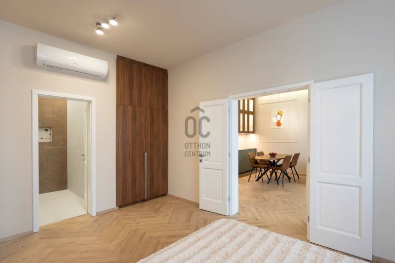 Klasszikus budai elegancia – kortárs luxussal a Bimbó úton.Egy lakás, ahol a minőség nem magyarázkodikVannak otthonok, amelyek nem hangosak.Nem akarnak meggyőzni – egyszerűen érezni lehet rajtuk a színvonalat.A II. kerületben, a Bimbó út elején, a Mechwart ligettől pár perc sétára eladó egy 90 m²-es, teljes körűen és kompromisszummentesen felújított, berendezett, 3. emeleti lakás, amely a klasszikus budai polgári hangulatot ötvözi a mai luxus elvárásaival.Üdv itthon!LOKÁCIÓ – ahol Budapest legjobb arca mutatkozik megA Mechwart liget közelében a II. kerület egyik legstabilabb presztízsű városrésze.Ez az a környék, ahol: a zöld nem dekoráció, hanem mindennapi élmény, a város elérhető, de nem tolakodó, az utcák, házak és szolgáltatások időtálló minőséget képviselnek.A liget közelsége nemcsak pihenést ad, hanem ritmust is a mindennapoknak: reggeli séta, délutáni kávé, esti nyugalom.Pár percre a Széll Kálmán tér, mégis csendes, rendezett, értéktartó környezet.Ez az a lokáció, amit nem kell bemutatni – aki ismeri, tudja, mit jelent itt élni.A LAKÁS – letisztult luxus, minden részletébenAz ingatlan teljes felújítása során nem az volt a kérdés, „mi fér bele”, hanem az, hogymi az, ami méltó ehhez a térhez.A tágas, amerikai konyhás nappali egy elegáns, világos központi tér, ahol a konyha nem elkülönül, hanem organikusan simul bele az enteriőrbe. Az AEG gépekkel felszerelt konyha, a minőségi felületek és a precíz kivitelezés mind azt szolgálják, hogy a tér egyszerre legyen reprezentatív és élhető.A két hálószoba valódi privát zóna – nyugodt, arányos, visszafogottan elegáns.A két fürdőszoba és a külön vendég WC ritka kényelmet jelent ebben a méretkategóriában, és egyértelműen a felsőbb színvonalú lakások sajátja.Ami igazán prémiummá teszi: Ez a lakás nem a látványos extrákkal, hanem a minőségi alapokkal emelkedik ki:Teljesen új víz- és elektromos hálózatPadlófűtés, egyenletes hőérzettelHáromrétegű fa nyílászárók – csend, hőkomfort, időtállóságLégkondicionálás, diszkréten beépítveGondosan kiválasztott anyagok, arányok és színekBerendezve, azonnal költözhető állapotban (a mozdítható bútorok nincsenek az árban)A közös költség (47.000 Ft), amely tartalmazza a fűtést és a vizet, tovább erősíti az otthon kényelmes, kiszámítható működését.ÉPÜLET ÉS KÖRNYEZET: A 1950 előtt épült, liftes társasház klasszikus budai karaktert hordoz:masszív szerkezet, nagy belmagasság, időtálló arányok.A parkolás a közvetlen szomszédos épületben megoldott, havi 57.150 Ft-ért, felújított parkolóhelyen – ami ezen a környéken komoly érték.Ez nem egy „jó lakás” – hanem egy jó döntésEz az otthon azoknak szól,akik értik a lokáció valódi értékét,akik nem akarnak felújítással, kompromisszumokkal foglalkozni,akik számára a luxus nem hivalkodás, hanem minőség. |