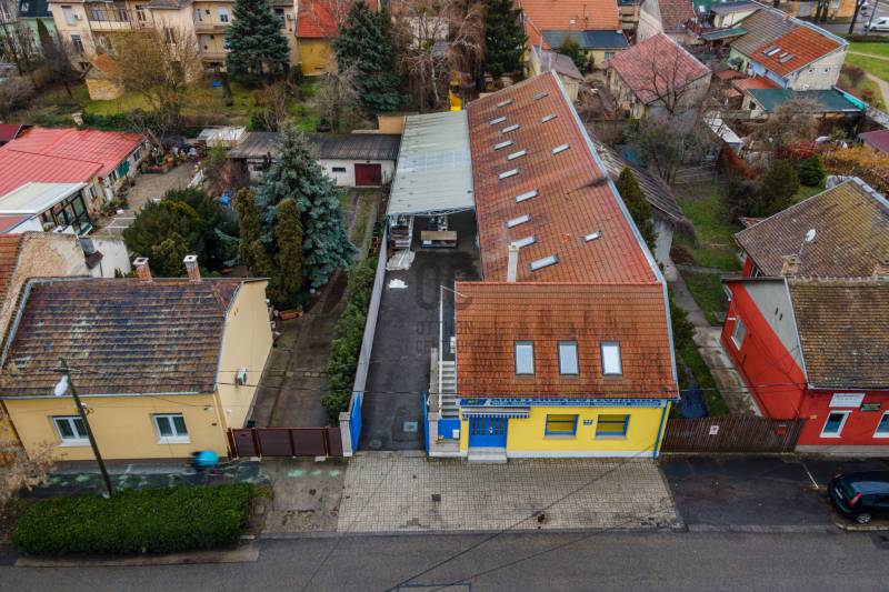 Kispest frekventált részén eladó egy sokoldalúan hasznosítható üzleti ingatlan, jó megközelíthetőséggel, utcafronti elhelyezkedéssel. A 545 m²-es telken egy 238 m² alapterületű, háromszintes (pince + földszint + tetőtér), jelenleg is üzletként és raktárként funkcionáló épület valamint egy 134m²-es terasz található.A födszinten egy utcafronti üzlettér, egy kisméretű irodai szoba, egy dolgozói öltöző zuhanyzókkal, illetve két nagy alapterületű műhely/raktár kapott helyet, több bejárattal és kapuval.A félnyeregtetős, 3,5 m csúcsmagasságú beépített tetőtéren egy nagyobb irodai helyiség, egy fürdőszoba, egy konyha, illetve üzemi funkciókra alkalmas tér található.Az épület alatt egy 2,5 m belmagasságú pince biztosít extra raktározási lehetőséget.A 134 m²-es terasz (fedett udvari rész) alkalmas pakolásra, tárolásra vagy kültéri munkavégzésre.Az aszfaltozott udvarnak köszönhetően az ingatlan alkalmas kisebb méretű teherautók fogadására és rakodására is.Ideális lehet:• kereskedelmi tevékenységre• bemutatóterem + műhely kombinációra• szerviznek, üzemnek• központi irodának raktárral• webáruházas logisztikai bázisnak• oktatóközpontnak• egészségügyi központnak• sportközpontnakJó lokáció, rugalmasan alakítható terek, komplex üzleti működésre optimalizált kialakítás.• Beépíthetőség: 60% maximális beépíthetőség.• Szintterületi mutató: Maximum 1,9 m²/m².• Maximális építménymagasság: 10,5 m. |