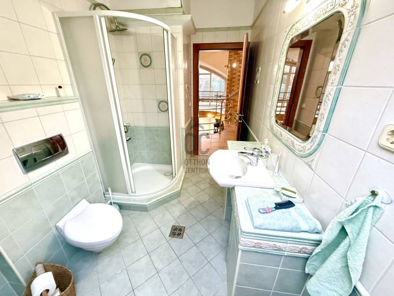 Dunakeszi egyik legkeresettebb, legszebb környezetében, a dunaparttól mindössze pár száz méterre, Révdűlőn kínálunk megvételre egy egyedileg tervezett, önálló luxus családi házat, amely kompromisszummentes minőséget és maximális kényelmet nyújt. 2002-ben, 38 cm-es Porotherm téglából épült, kiváló állapotú ingatlan 774 m²-es, parkosított telken helyezkedik el, rendezett, barátságos szomszédságban.Tágas, átgondolt terek – 3 szinten- Pince: 117 m² – teljesen közművesített, mosókonyhával és WC-vel,kialakítása ideális wellness részleg, fitnesz vagy hobbitér létrehozására.- Földszint: 164,47 m² + 30 m²-es, fűtött, kétállásos garázs, amely elektromos autók töltésére is alkalmas.- Tetőtér: 122,47 m², világos, jól hasznosítható terek.Az ingatlan dupla összkomfortos, a födémen 12 cm Therwoolin hőszigeteléssel, az egyedileg gyártott SOFATHERM hőszigetelő nyílászárók külső árnyékolóval felszereltek.Modern technológia – gyakorlatilag rezsimentes működés- 3×40 A elektromos kapacitás- 8 kW-os napelem rendszer – gyakorlatilag nincs villanyszámla- Hőszivattyús fűtés-hűtés-Központi porszívórendszer + robotporszívó (a konyhai lábazatból történő elszívással is)Prémium konyha és belső kialakításA tágas, exkluzív konyha minden igényt kielégít:- főzősziget gáz- és kerámialappal, valamint japán grilllel- hibátlan állapotú fekete gránit munkapult- magas minőségű, beépített gardróbok – a vételár részét képezikJelenleg 3 hálószoba áll rendelkezésre, de a nappali terek méretének köszönhetően további hálószobák is könnyedén kialakíthatók.Kert, biztonság, életérzésA gondosan parkosított kert:- automata öntözőrendszerrel- robotfűnyíróval- ásott kúttalA biztonságról kamerarendszer és távfelügyeletre kötött riasztó gondoskodik.A Duna közelsége, a környező parkok és a kiváló lakóközösség különleges, nyugodt életérzést biztosítanak.Ez az ingatlan azoknak szól, akik nem kompromisszumot, hanem életminőséget keresnek. Hívjon bizalommal hétvégén is, megtekintés rugalmasan egyeztethető. |