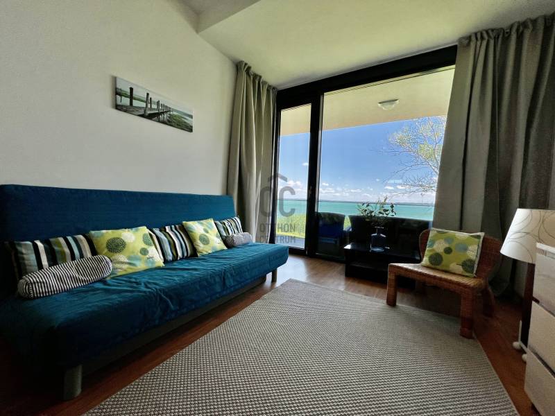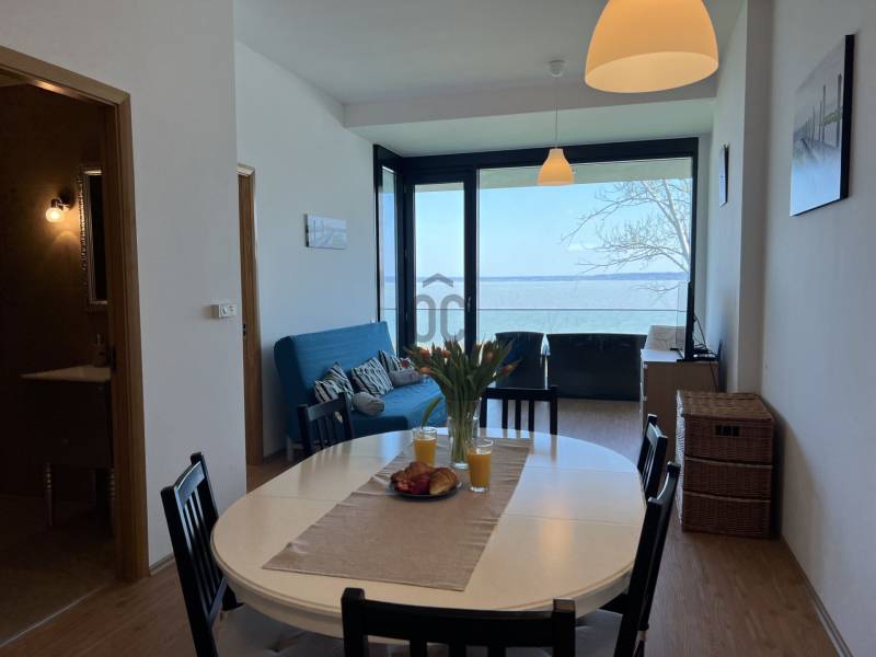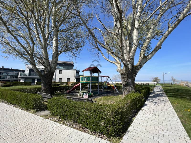 Megvételre kínálom ezt a ritka, keleti, balatoni panorámával rendelkező, 77 nm-es, 3 szobás, első emeleti luxus nyaralót. A lakás kiváló minőségű társasházban található, közvetlenül a Balaton partján, festői környezetben.Szeretne családjával, barátaival egy csodás helyszínen kikapcsolódni, minden kényelem és komfort közepette?Akkor ezt a lakást látnia kell!Az ingatlan főbb jellemzői:•Privát kert: A bejárat felől egy 73 nm-es, gondozott privát kert várja a tulajdonosát.•Kertkapcsolatos terasz: A bejáratnál egy 7 nm-es terasz biztosítja a kertkapcsolatot.•Balatoni terasz: Egy 13 nm-es, örök panorámás terasz nyílik a Balatonra.•Tároló: A bejárat mellett található saját tulajdonú 3 nm-es tároló.•Parkoló: A lakáshoz közeli, kényelmes parkolóhely.Belső Terek•Előtér: Beépített szekrény és mosógép.•Amerikai konyha: 12 nm-es, mosogatógéppel és étkezővel.•Nappali: 21 nm-es, padlótól plafonig érő üvegfallal, lenyűgöző panorámával.•Hálószobák: Kettő hálószoba, az egyik a privát kertre, a másik a Balatonra néző kilátással.•Fürdőszoba: Káddal és WC-vel.•Különálló WC: Kényelmes elrendezésű.Műszaki tartalom•Melegvíz ellátás: Beépített 120 literes Ariston villanybojler.•Fűtés-klíma: Norvég Nobo fűtőpanel, Hűtő-fűtő fan-coil berendezések.•Kandalló lehetőség: Nappaliban kialakított kémény.Közösségi szolgáltatások•Biztonság: 0-24 órás portaszolgálat.•Kényelmi szolgáltatások: 25 méteres feszített víztükrű medence, két gyermekmedence, játszótér, gondozott kert, saját strand és stég.A közös költség tartalmazza a portaszolgálatot, közös helyiségek takarítását, kertész díját, medence karbantartást, felújítási alapot, szemétszállítást, víz-, hűtés-fűtés átalányt.Az ingatlan eladási ára nem tartalmazza a parkolóhelyet és a tárolót.•Parkolóhely ára: 6 millió Ft•Tároló ára: 4 millió FtEz az ingatlan tökéletes választás, legyen szó saját használatról, kiadásról, szezonális vagy állandó lakhatásról. Az ingatlan frekventált lokációjának, örök panorámájának és magas minőségű kivitelezésének köszönhetően folyamatos értéknövekedés várható.Ne hagyja ki ezt a kivételes lehetőséget! Komfort, kényelem, minőség és egy álomszerű környezet várja új tulajdonosát. |