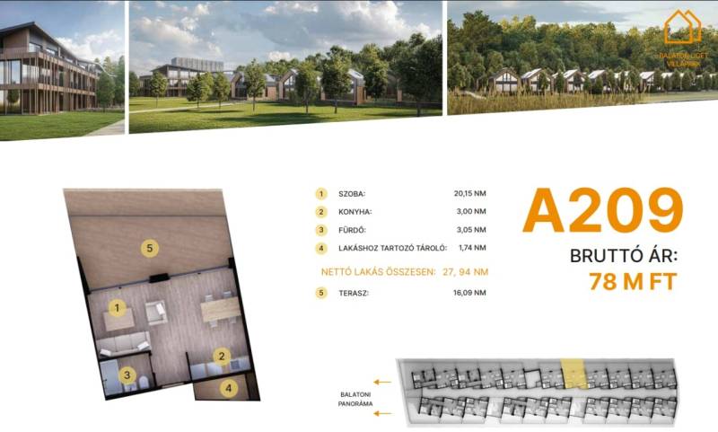 Balatonföldvár: Balatonföldvár fontos turisztikai célpont, nemcsak a magyarok, hanem más európai országok turistái számára is, természeti szépségei (például a löszhegy és a nagy virágos parkok), továbbá történelmi örökségei (például a kelta ösvény, a régi kúriák és villák) miatt számtalan szabadidős lehetőséget, valamint számos vízi sportot (vitorlázás, szörfözés, horgászat, evezés)Balaton liget willapark:Lakások száma: 56 db.Alapterület: 28-56 m².A földszinti lakásokhoz saját, privát kert tartozik.A földszinten 21 lakás található, 48–110 m² közötti alapterülettel.Az első emeleten további 21 lakás érhető el, 47–75 m² közötti méretben.A második emeleten 17 lakás kapott helyet.A lakásokhoz önálló tárolóhelyiségek tartoznak, amelyek a közös folyosóról közelíthetők meg.Környezettudatos építő anyagokA+ energetikai besorolásFelszíni parkoló: 6.350.000. Ft.Modern letisztult építészet, tömegformálás, Balatonra tájolt panorámás teraszok.Apartmanlakás - alapfelszereltség:100% tömör CLT Ausztriából.20 cm kőzetgyapot hőszigetelés.Fa hőszigetelő nyílászárók 3 rétegű üvegezéssel,tölgyfurnér melegburkolat.Porcelán greslap hidegburkolat, villeroy fürdőszoba szaniterekpadlófűtés.Levegős hőszivattyú (VRV splitklíma), 50kW társasházi napelemrendszer, elektromos redőny, szúnyogháló beépített bútoroksaját terasz.A 209. lakás.A további kérdésekkel és a megtekintéssel kapcsolatban kérem keressen a megadott mobil számon. |