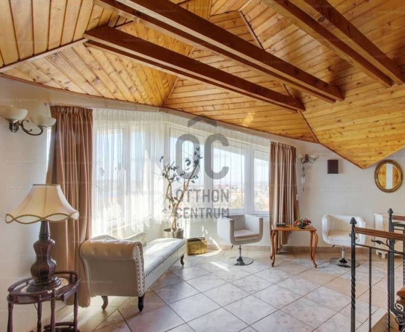 ÖRÖK PANORÁMÁS, ENERGIATAKARÉKOS LUXUS VILLA BIATORBÁGYON – 340 NM, KASTÉLYJELLEGŰ MEGJELENÉSSELBudapesttől mindössze 14 km-re, Biatorbágy egyik csendes, elegáns mellékutcájában kínálunk megvételre egy különleges, háromszintes, 400 nm-es villaépületet, amely örök panorámával, kiemelkedően alacsony rezsiköltséggel és sokoldalú hasznosítási lehetőségekkel rendelkezik.FENNTARTHATÓ LUXUS – AKÁR NULLA FORINTOS FŰTÉSSZÁMLAA villa energiahatékony működését egy 18 kW teljesítményű, 22 optimalizálóval felszerelt napelemrendszer, valamint svéd Energy Save hőszivattyúk (13 kW és 11 kW) biztosítják.Ennek köszönhetően az ingatlan rezsiköltsége extrém alacsony, az áramköltség gyakorlatilag nullára csökkenthető.További műszaki előnyök:20 cm üveggyapot tetőszigetelésBramac tetőcserépKorszerű rézvezetékelés (teljes felújítás: 2006)5 db klíma (ebből 3 LG hűtő-fűtő klíma a felső szinten)automata Hunter öntözőrendszerszakszerűen kiépített szikkasztórendszer (2018)belső terek friss festése (2024)RUGALMAS TÉRKIALAKÍTÁS – MAGÁNCÉLRA ÉS VÁLLALKOZÁSRA IS IDEÁLISAz ingatlan kiválóan alkalmas:exkluzív magánrezidenciánaknagycsaládosoknak, akár két külön lakrésszelrendelőnek, bentlakásos intézménynekcégközpontnak vagy irodai funkcióraA háromszintes épülethez 900 nm-es, örökzöldekkel parkosított kert tartozik.A főbejárat a középső szintre vezet, míg az alsó szint külön bejáratról is megközelíthető, ami tovább növeli a hasznosíthatóságot.HELYISÉGKIOSZTÁS3 nappali6 külön bejáratú szoba2 teljesen felszerelt, gépesített konyha3 fürdőszoba4 WC (bidé, piszoár)dolgozószobaháztartási helyiségkazánház70 nm-es márvány teraszgarázs + kültéri parkolókPRÉMIUM EXTRÁK ÉS ELEGÁNS RÉSZLETEKkovácsoltvas korlátokstukkók, boltívekhidromasszázs sarokkád, zuhanykabinantik tükrökriasztórendszerszökőkútautomata, fűthető garázszárt beálló 2–3 autó számáratérkövezett udvari parkoló további 3 autónakKERT ÉS ÉLETTÉR – PANORÁMA A BIAI-TÓRAA 70 nm-es terasz és a dúsan zöldellő, intim kert tökéletes helyszínt biztosít pihenéshez, családi és baráti összejövetelekhez.A Biai-tó lenyűgöző látványa a mindennapok része, miközben a környezet maximális nyugalmat és privát életteret nyújt.LOKÁCIÓ – NYUGALOM ÉS KIVÁLÓ INFRASTRUKTÚRABudapest gyorsan elérhető az M1/M7 autópályákonLovaglási lehetőségek Sóskúton és Etyekenwellness és úszási lehetőség Herceghalmonegész éves borkóstolási programok Etyeken |