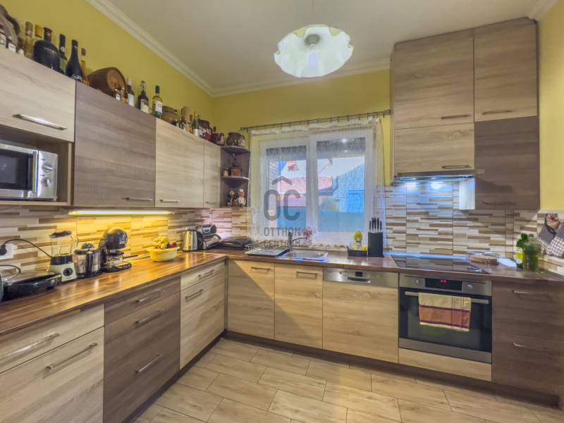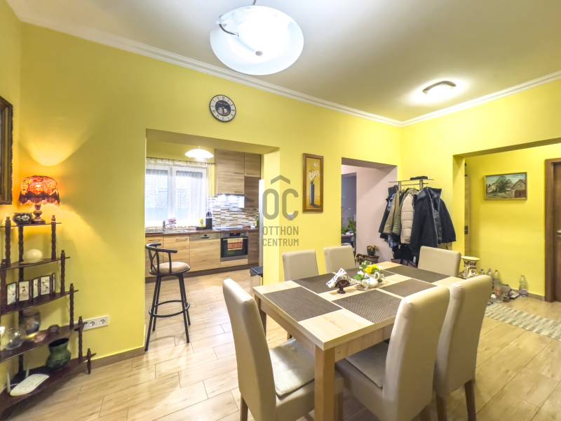 Két különálló, felújított épület egy tágas, virágos telken – tökéletes választás kétgenerációs családoknak!Ezen a 1281 m²-es, gondozott, virágokkal teli telken egy 80 m²-es főépület és egy 50 m²-es különálló lakrész található. A két épület egymástól független, mégis közvetlenül egymás mögött helyezkedik el, így ideális megoldást kínál azoknak, akik szeretnének együtt, mégis külön élni.FőépületA főépületet 2017-ben teljeskörűen felújították, ami magában foglalta az elektromos hálózat teljes cseréjét, a belső burkolatok megújítását, valamint egy hűtő-fűtő klíma beépítését. A ház kívülről szigetelt, a háromrétegű, bukó-nyíló műanyag nyílászárók és a gázcirkó fűtés pedig biztosítják a kiváló hőmegtartást és az alacsony rezsit.Belépve egy tágas, világos nappali fogad, amely tökéletes a családi együttlétekhez. A modern, ízlésesen kialakított konyha minden szükséges kényelmet biztosít, a fürdőszoba és a WC külön helyiségben található, a házban pedig bőséges tárolási lehetőség áll rendelkezésre. A harmonikus elrendezés és az igényes kivitelezés igazán otthonossá teszi az ingatlant.Hátsó lakrész:A főépület mögött egy különálló, 50 m²-es lakrész található. Ez egy önálló, intim élettér, amelyben saját hálószoba és igényesen kialakított fürdőszoba kapott helyet. Tökéletes megoldás mindazoknak, akik szeretnék megőrizni a függetlenségüket, miközben közel maradnak a családhozTelek és környezetA 1281 m²-es telek rendezett, virágokkal és dísznövényekkel teleültetett kert, amely ideális hely a pihenésre, kertészkedésre vagy a családi együttlétekre. A tágas udvar lehetőséget ad akár további bővítésre, autóbeállásra, vagy egy kellemes kerti pihenő kialakítására is.Kinek ajánljuk?Ez az ingatlan kiváló választás kétgenerációs családoknak, akik szeretnének egymás közelében, de mégis külön élettérben élni.Ugyanakkor ideális nagyobb gyerekes családoknak is, ahol a fiatal felnőtt önálló lakrészt kaphat, de vállalkozóknak is remek lehetőség, hiszen a hátsó épület akár vendéglakásként vagy dolgozószobaként is hasznosítható. |