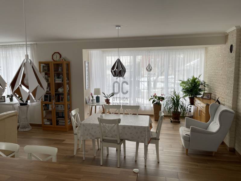 Egy kivételes lehetőséget kínálunk Önnek Diósdligeten , fiatalok, családosok számára ideális otthonra lelhetnek.Ez a modern, használt ház brutto 145 négyzetméteres alapterületével és 1032 négyzetméteres telkével tökéletes választás mindazok számára, akik a város zajától távol, de mégis központi elhelyezkedésben szeretnének élni.Az ingatlanban 2 szoba található plusz nappali+étkező+konyha, a nappali különösen világos és barátságos, köszönhetően a nagy ablakoknak és a minimalista kialakításnak.A nappali élettere így több mint 60 nm, ez 1 esetleg 2 kisebb szoba leválasztását is lehetővé teszi még.A központi tér nagyon jó lehetőséget kínál a minden napi élethez és a családi összejövetelek és baráti találkozók felejthetetlen élményeket nyújtanak.A házhoz tartozó 24,5 négyzetméteres terasz ideális helyszín a pihenésre és a szabadban eltöltött időre.Az ingatlan állapota kiváló, 2025-ben készült el, a fűtés gáz cirkóval megoldott, míg a hűtésről klíma gondoskodik, így a nyári melegben is kellemes hőmérséklet várja a lakókat.Az ingatlanban gardrób szoba és mosókonyha is található, amelyek praktikus tárolási megoldásokat kínálnak.A modern LED hangulatvilágítás és a redőnyök pedig a kényelmet és az exkluzív megjelenést szolgálják.A környék ellátottsága kiváló, a közlekedési csomópont közelsége miatt a közlekedés kitűnő, így a főváros könnyedén elérhető.Diósd csendes, kertvárosi lakásai között található ez a gyöngyszem, a, ideális kertet biztosítva a gyermekek számára a szabadban való játékhoz.Az ingatlanban található egy 2 állásos garázs 36 nm és egy 15 nm nyári konyha is.A környék nyugodt, de a ház nem az utcafronton helyezkedik el, magánút vezet hozzá, ez is garantálja, hogy Ön nyugodtan élvezheti otthona kényelmét.Ez a felkapott környék nemcsak a családok, hanem a befektetők számára is vonzó lehetőségeket kínál.Az ingatlan elhelyezkedése miatt a jövőbeli értéknövekedés garantált, így érdemes mihamarabb lépni.Kérjük, ne habozzon, keressen bizalommal bármilyen kérdésével vagy időpont egyeztetéssel kapcsolatban.Az Ön álmai otthona már csak egy telefonhívásnyira van! |