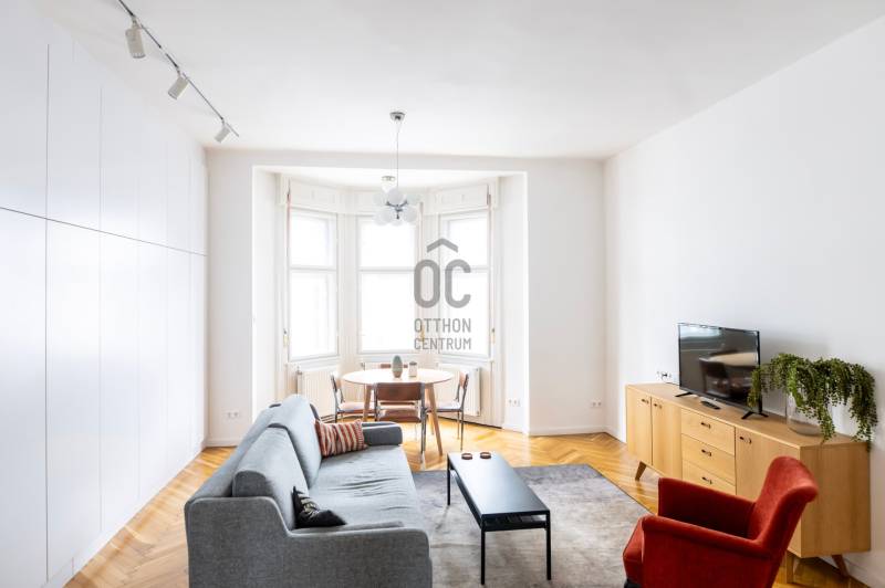Október 6. utca az egyik legértékesebb része Lipótvárosnak. A kerület 10 legdrágább utcája között van.*Nevét az aradi vértanúk emlékére kapta.5 perc sétára a Parlament, Szabadság tér, Szent István Bazilika, Operaház, Dunakorzó és még sorolhatnám.Éttermek, kávézók széles választéka elérhető.Itt épült 1911-ben Román Miklós és Román Ernő tervei szerint ez a klasszikus, lipótvárosi polgári épület.Az 58 m2 - es lakás a liftes ház 5. emeletén van.Nappalija az Október 6. utcára néz, egyik oldalán padlótól-plafonig végig futó gardróbbal.Hálója csendes, befelé néző ablakkal.Az ablakos, gépesített, külön - konyha nagy értéke a belvárosi lakásoknak. Ma már ritkábban találkozunk vele. ( általában a nappaliba építik ) Fürdője modern, zuhanyzóval ellátott.A külön háztartási helyiségben található a kazán, mosógép.A lakás felújított, klimatizált, egyedi gáz fűtéssel. Ajánlom otthonnak, ingatlanbefektetésnek egyaránt.* KSH ingatlan adattár |