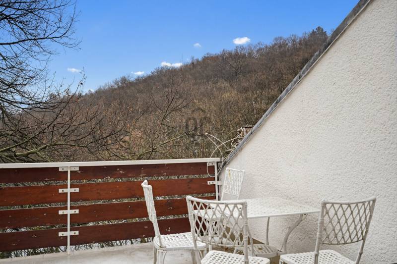 Társasházi lakás eladó garázzsal együtt a Diósárok - Susogó utca sarkánA társasház 1975-ben épült, egy teraszos kialakítású telken. LAKÁS:- 71 nm- 3 külön bejáratú szoba- két terasz 17-17 nm, az egyik a nappaliból, a másik háló szobából megközelíthető- erdőre néző panoráma- a nappali és a teraszos szoba déli fekvésű- konyha, ebből nyílik egy kisebb kamra- konyha keleti fekvésű- a harmadik szoba észak-keleti fekvésű- fürdőszoba - WC - nyílászárók műanyagok, redőnnyel, szúnyoghálóval,2012 körül lettek kicserélve - parketta a szobákban és a közlekedőben jó állapotú, - konyhában, fürdőszobában, kamrában járólappal burkoltak. - fűtés házközponti egyedi mérés nélkül-közös költség tartalmazza a takarítást, víz és csatorna használatot, fűtést és a ház biztosítást 59000 Ft ( 2026-évben ) - tetőterasz szigetelés 2022-2023-ban megtörtént - azonnal költözhető- tehermentes GARÁZS: - 13 nm- felújításra szorul- külön helyrajzi számon- Diósárok utcáról nyílik |