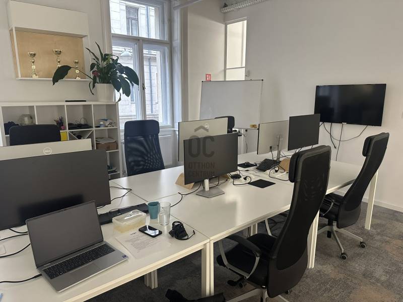 A Szent István körút elegáns, díszes homlokzatú saroképületében kínáljuk vételre egy teljesen felújított, modern irodát. Az ingatlan 5 db egymás melletti lakás összenyitásával lett kialakítva és jogilag is irodává lett átminősítve.Az V. kerület a főváros szíve, méltán az egyik legkeresettebb területe. Az ingatlan az V. kerület és a XIII. kerület határán helyezkedik el közel a Margitszigethez, Parlamenthez, és számos igazgatási épülethez. A környéken éttermek, kávézók sokasága, kulturális és kikapcsolódási lehetőségek elérhetők rövid sétával. A városrész közeli utcáiban található a magyar igazságszolgáltatás központja: a Kúria, a Fővárosi Törvényszék és a PKKB. Emiatt a környéken nagyon sok ügyvédi iroda működik. Az ingatlan nagykörúti elhelyezkedése miatt könnyen megközelíthető az M3 metróval, 4/6-os villamossal, és a Nyugati Pályaudvar közelében, több busz- és trolijárat megállója található pár perc sétára.A társasház 1902-ben épült, a tető és a homlokzat pár éve került felújításra.Az ingatlan a társasház magasföldszintjén és az 1. emeleten található, A két szintet belső lépcső köti össze. Az ingatlan magasföldszinti része úgy lett felújítva, hogy közvetlen utcai bejárat nyitható. A bejárat kinyitására településképi engedély beszerzése van folyamatban.Mivel a teljes felújítás mindössze két éve készült el, ezért a legjobb hasznosítás az irodai funkció. Például egy akár 30 fős ügyvédi iroda is kényelmesen elfér az ingatlanban.E mellett jó befektetés lehet szálloda vagy panzió kialakítása, mivel az önálló utcai bejárat lehetőségével csak nagyon kevés társasházi ingatlan rendelkezik a belvárosban. szintén jó jövőbeni hasznosítás lehet a korábbi lakófunkció visszaállítása, és akár 10 db kisméretű lakás kialakítása.Az eladási ár nettó ár, további áfa (fordított áfa) terheli. |