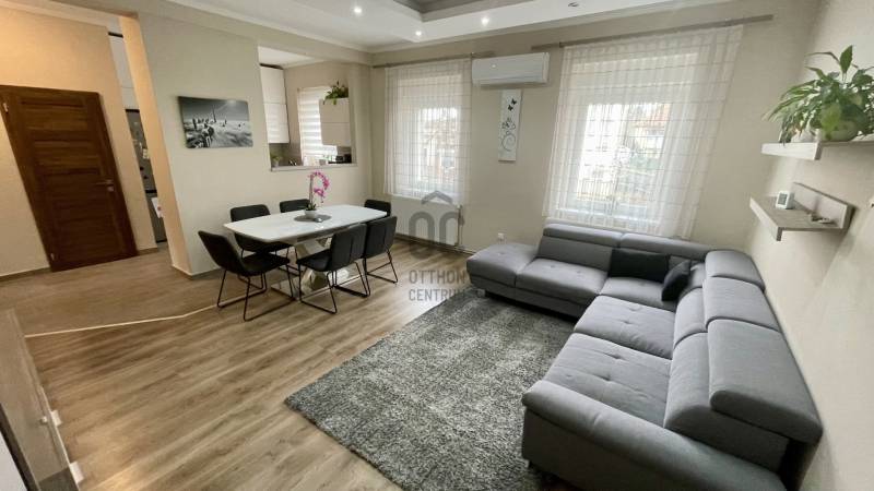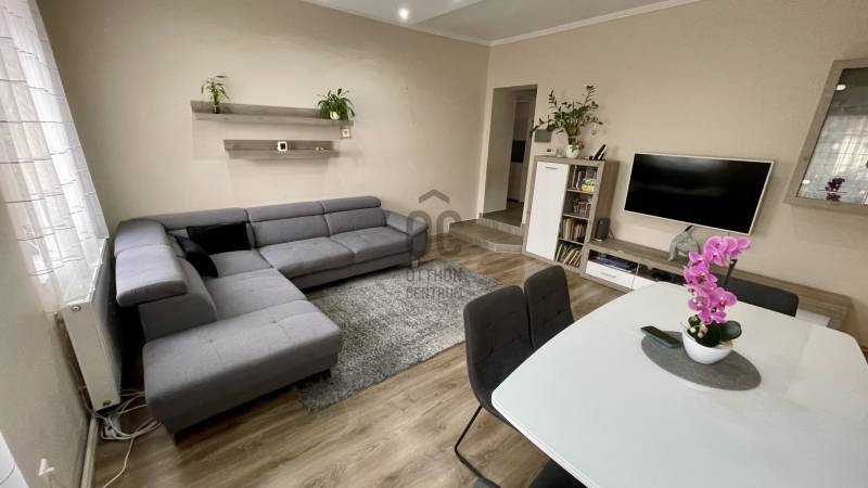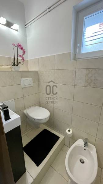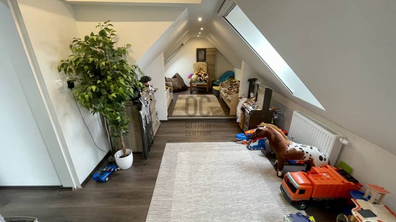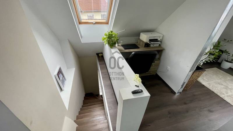 Eladóvá vált egy 150 négyzetméteres, teljeskörűen felújított családi ház Szombathely egyik legkedveltebb részén, a Csónakázó-tó közelében. A modern stílusú ingatlan ízléses burkolatokkal, beltéri ajtókkal, konyhabútorral beépített.A tágas nappali-étkező egy légtérben található a konyhával.Az ingatlan földszintjén és a tetőtérben, 4 különböző méretű hálószoba és 2 modern fürdőszoba található, így ideális nagyobb családok számára is. A műanyag nyílászárók és a napelemek gondoskodnak a hatékony energiafelhasználásról, míg az öt klíma berendezés biztosítja a kellemes hőmérsékletet minden évszakban.Az otthon melegéről gázközponti rendszer gondoskodik, ami kényelmes és hatékony megoldást nyújt.Az épület szigetelt és pince is tartozik hozzá, így tárolásra is kiválóan alkalmas.A házhoz tartozik egy fedett autóbeálló, két gépjármű számára, valamint egy udvarra néző terasz, ahol kellemesen pihenhetünk.A családi ház egy 415 négyzetméteres telken helyezkedik el, amely egy kellemes méretű kerttel rendelkezik. A Csónakázó-tó közelsége pedig még tovább növeli az ingatlan vonzerejét, hiszen a természet közelsége és a nyugalom garantált.Ne hagyja ki ezt a remek lehetőséget, hívjon még ma!Hitelre van szüksége? Az Otthon Centrum az ország egyik legnagyobb és legmegbízhatóbb hitelközvetítőjeként, teljes körű és díjmentes hitelügyintézéssel, biztosításkötéssel áll rendelkezésére!Kérje személyre szabott ajánlatunkat kollégáinktól! |