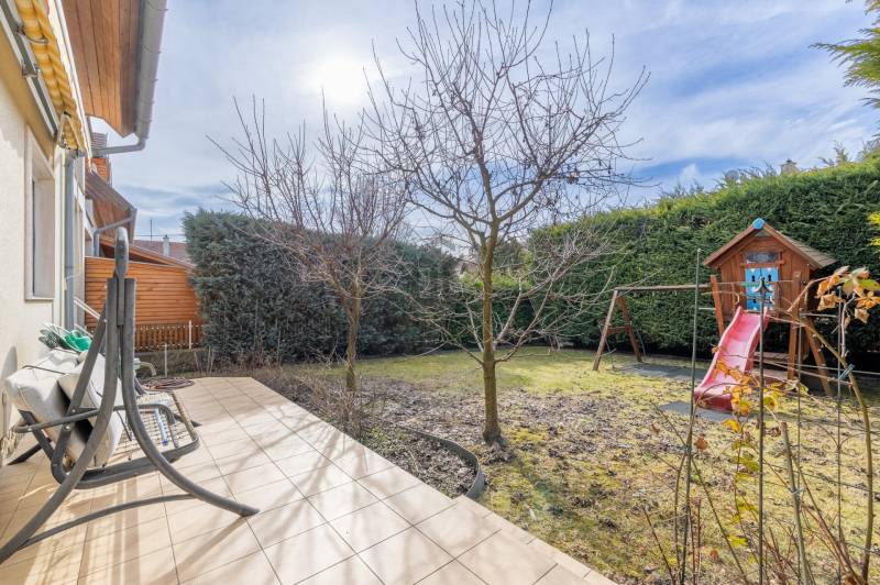 Budapest 22. kerületében, Budafok csendes, barátságos környezetében található 2003 ban épült sorházat kínálunk eladásra. 375 négyzetméteres telekkel rendelkezik, így bőséges teret biztosít a családi élethez. A házban négy tágas szoba található, amelyek közül a nappali különösen világos és hívogató, ideális helyszín a közös családi programokhoz. A házhoz tartozik egy 16,4 négyzetméteres terasz, ahol a nyári estéket kellemesen töltheti el a család. Az ingatlan tehermentes, így azonnal birtokba vehető. Fűtés gáz (cirko) rendszerrel működik. A kert rendezett és világos, automata öntözőrendszerrel felszerelt, amely megkönnyíti a növények gondozását, így Önnek nem kell sok időt töltenie a kertészkedéssel. A környék rendkívül kedvező adottságokkal rendelkezik, hiszen a csendes utcák és a barátságos szomszédság ideális környezetet biztosítanak a gyermekek számára. Az ingatlan közelében található boltok, iskolák és óvodák, így a mindennapi élet kényelmesen megoldható. A közlekedés szempontjából is előnyös a helyszín, hiszen a tömegközlekedési lehetőségek könnyen elérhetők, így a főváros többi része is gyorsan megközelíthető, legyen szó autóval vagy tömegközlekedéssel való utazásról. Ez a ház nemcsak egy ingatlan, hanem egy otthon, ahol a családja boldogan élhet. Ha Ön is szeretne egy olyan helyet, ahol a gyermekeinek biztonságos és nyugodt környezetet biztosíthat, akkor ez a lehetőség Önnek szól. |