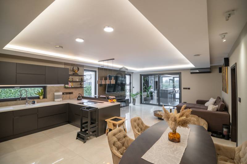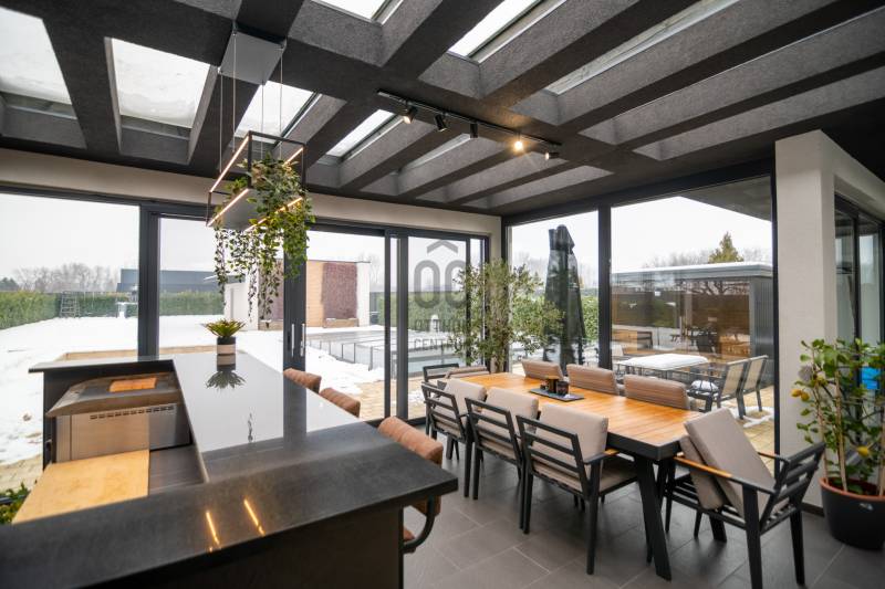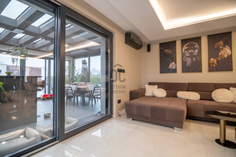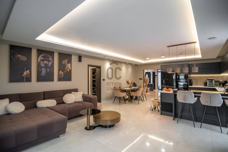 Exkluzív luxus családi rezidencia eladó Dabasi - Hernádon – kompromisszumok nélküli életstílusHernád egyik legnyugodtabb, presztízsértékű részén kínáljuk megvételre ezt a kivételes adottságokkal rendelkező, prémium felszereltségű luxus családi házat, amely minden részletében a minőséget, a kényelmet és a modern technológiát képviseli.Az 363 m² alapterületű, kifogástalan állapotú ingatlan egy 1500 m²-es, gondosan kialakított telken helyezkedik el, és ideális választás mind exkluzív otthont kereső családok, mind értékálló befektetést keresők számára.A rezidencia négy tágas szobával, nappalival amerikai konyhával és 3 elegáns fürdőszobával rendelkezik, ahol a terek arányai és a funkcionális elrendezés a magas életszínvonalat szolgálják.Privát teraszélmények72 m²-es földszinti, fedett, zárt télikert – egész évben használható, reprezentatív élettér80 m²-es emeleti terasz, teljes felületén prémium műfű borítással, zavartalan pihenésre és kikapcsolódásra tervezveParkolás & tárolás – diszkréten megoldva2 gépkocsi számára kialakított fedett beálló, exkluzív méhsejtes LED világítássalA beálló mellett praktikus, esztétikus kerti tárolóBiztonság & intelligens otthonrendszerA ház teljes körű, professzionális védelemmel ellátott:HikVision kamerarendszer (5 kamera, ebből 1 kihangosítható)HikVision kaputelefon24 órás távfelügyeletre kötött biztonsági rendszerParadox hőérzékelőkMozgás- és nyitásérzékelők minden helyiségben és nyílászárónUjjlenyomatos és kódos prémium Marshall bejárati ajtóBelső terek – technológia és eleganciaDesign konyha rejtett szagelszívóval és LED megvilágítással, nyitásérzékelő Elektromos redőnyökAutomata víztisztító rendszerKülön kialakított edzőtér klímával, szellőztető rendszerrel, TV-vel és hangrendszerrelWellness & életstílusFűtött, tengervizes úszómedence, ellenáramoltatóvalMedencéhez tartozó külső zuhanyzóSüllyesztett sütögető – grillezési és bográcsozási lehetőséggelKültéri finn szauna (210x400)A kert végében elhelyezkedő, 40 m²-es, teljesen felszerelt, önálló edzőterem – privát fitness élmény kompromisszumok nélkülKert – fenntartható luxusFúrt kútról működő automata öntözőrendszerHusqvarna Automower 415X robotfűnyíróHangulatos, gondosan megtervezett kerti díszvilágításZárt terasz – a rezidencia ékköveKandalló és pizzasütőTeljes értékű, prémium kültéri konyha szigettel, sütővel és vaslappalHáromrétegű, hőszigetelt üvegtető2×2 szárnyú, elhúzható nyílászárók szúnyoghálóval→ tökéletes helyszín exkluzív vacsorákhoz, baráti összejövetelekhez, minden évszakbanJövőbiztos megoldásokHuawei 3 fázisú, 22 kW-os elektromos autó töltőFűtés, hűtésLevegő-víz hőszivattyúPadlófűtésKlíma hűtésBelső levegő keringetés300 literes, meleg víz bojlerEz az ingatlan nem csupán egy ház, hanem egy tudatosan megtervezett, magas műszaki és esztétikai színvonalú életstílus-rezidencia, ahol a luxus természetes módon válik a mindennapok részévé.Letisztult vonalak, intelligens megoldások és privát luxus – mindez egy harmonikus egésszé formálva. Ez az otthon nem követi a trendeket, hanem szintet képvisel.Az ilyen lehetőségek ritkán kerülnek piacra.Megtekintés kizárólag előzetes egyeztetés alapján. |
