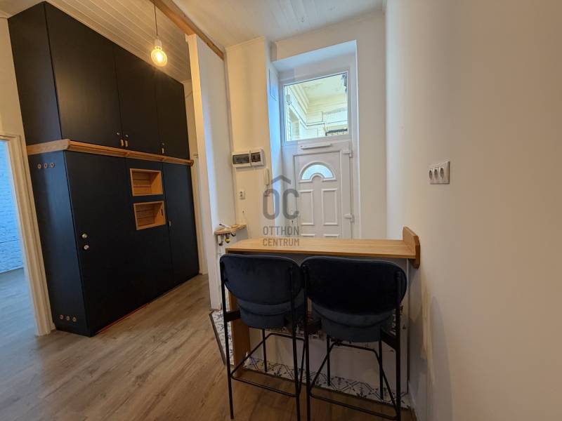 Budapest VII. kerületében, a Rákóczi úton, a Keleti pályaudvar és a Blaha Lujza tér között, rendezett, normális lakóközösségű társasházban hosszú távra kiadó egy 43 m²-es, tetőtéri elhelyezkedésű, 2 szobás lakás a 6. emeleten.Az ingatlan frissen festett, felújított, részben bútorozott és gépesített (mosógép, hűtőszekrény). Beépített előszobabútor, valamint a szobában is beépített tárolók segítik a praktikus helykihasználást. A lakáshoz saját használatú, zárt, kiülős gangrész tartozik, szomszédok nélkül.Műszaki jellemzők:-Gáz nincs a lakásban-Fűtés: H tarifás (32A) elektromos panel és klíma-Éjszakai áramkör (32A)-Melegvíz: villanybojlerúA társasházban 2 darab, frissen felújított lift áll rendelkezésre.Költségek:-Bérleti díj: 290.000 Ft / hó-Közös költség: 13.100 Ft / hó-Rezsi: kb. 30.000 Ft / hó átalánybanBérleti feltételek:-Minimum bérleti idő: 1 év-Kaució: 2 havi bérleti díj-Közjegyzői kiürítési nyilatkozat szükséges-Kisállat nem hozható-Dohányzás nem megengedettA lakás azonnal költözhető, ideális választás egyedülállók vagy párok számára, akik frekventált, mégis nyugodt lakókörnyezetet keresnek.Megtekintés kapcsán keressen bizalommal! |