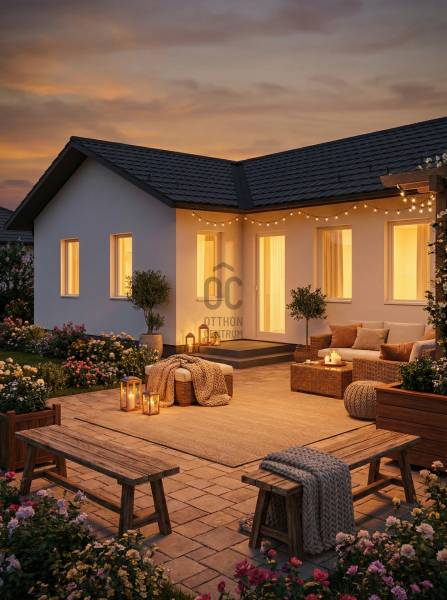 Képzeld el, hogy egy új otthon vár rád Siófok csendes és barátságos Sóstó városrészében.Ez a prémium kivitelezésű, modern ház tökéletes választás családosok számára, akik értékelik a világos tereket és a kényelmet. Az ingatlan alapterülete 71,26 nm, amely három tágas szobát és egy fürdőszobát foglal magában, így ideális helyet biztosít a családi élethez. A házhoz tartozik két terasz is, ahol élvezheted a nyári estéket és a napsütést. A kert lehetőséget ad a gyerekeknek a szabadban való játékra, míg te a friss levegőn pihenhetsz. Az ingatlan állapota kiváló, a hőszivattyús padlófűtés, a klímás hűtés és a dryvit szigetelés gondoskodik arról, hogy az otthonod mindig kellemes hőmérsékletű legyen, függetlenül az évszaktól. A modern dizájn és a világos belső terek egyedi hangulatot teremtenek, ami minden családtag számára vonzó lehet. A környék csendessége és biztonsága ideális környezetet biztosít a gyermekek számára. A közlekedési lehetőségek is kiválóak: könnyen megközelíthető a város központja, ahol minden szükséges szolgáltatás megtalálható, legyen szó boltokról, éttermekről vagy iskolákról. Az autóval közlekedők számára pedig a főbb utak közelsége biztosítja a gyors elérhetőséget. Ez az ingatlan nem csupán egy ház, hanem egy lehetőség, hogy egy új életet kezdj a családoddal egy csodás környezetben, de befektetésnek is ideális, ha szezonális ház kiadásban gondolkodik a jövőbeni tulajdonos.A Balaton, a legközelebbi szabadstrand kb. 15 perces gyalogútra van, két irányból is megközelíthető. Ezen a telken két egyforma ház épül, melyek önállóak, a telek pedig osztatlan közös tulajdon lesz ügyvédi használati megosztással. Mindkét házhoz egy kb. 430 nm-es telekrész, kert fog tartozni. Az egyik ház a Léda utca felől, a másik pedig a Luca utca felől, önállóan lesz megközelíthető.Műszaki leírásAlapozás: betonacél, C 20/25Falazás: főfalak - ytong 30 cm, válaszfalak - ytong 10 cmSzigetelés: 15 cm dryvit rendszer, a födém 20 cm üveggyapot szigetelés és gipszkartonFödém: könnyű szerkezetű, nem járhatóTetőszerkezet: fenyő fűrészáru, ácsolt építésűFedés: cserép (antracit)Nyílászárók: 3 rétegű, hőszigetelt műanyag ablakok és bejárat ajtó (fehérek) - redőny, szúnyogháló nincsBeltéri ajtók: több színből választható dekorfóliás ajtókBurkolatok: szobákban - laminált parketta, konyha-fürdőszoba-wc - csempe és padlólap (választhatóság 5000 Ft/nm értékben)Festés: glettelés-festés 3 rétegben (fehér)Fűtés, hűtés: hőszivattyús padlófűtés és 1 db klíma a nappalibanSzaniterek: 1 db kád (kérésre zuhany értékegyeztetéssel), 2 db wc, 1 db mosdó, 1 db kézmosó (MOFÉM csaptelepekkel)Villanyszerelés: 3 fázis, 3x20A, komplett villanyszerelés szerelvényekkel, gyengeáram kiépítés, H tarifaKörnyezet kialakítás: kerítések, elektromos kis és nagykapu, járdák, lépcsők, földfeltöltés, füvesítés, eső elvezetés a kertbe történikBútorozottság: nem kerül beépítésre semmilyen bútor vagy gépesítés (kivéve természtesen a hűtés-fűtés gépészetet)Ha kérdéseid vannak, vagy szeretnéd megtekinteni ezt a különleges otthont, ne habozz, keress bizalommal!(A képek között a hivatalos alaprajz alapján a mesterséges intelligencia segítségével tervezett látvány alaprajz is látható, tájékoztató jelleggel, valamint egyéb AI látványtervek - a hivatalos látványtervek mellett - szintén kedvcsináló jelleggel!) |