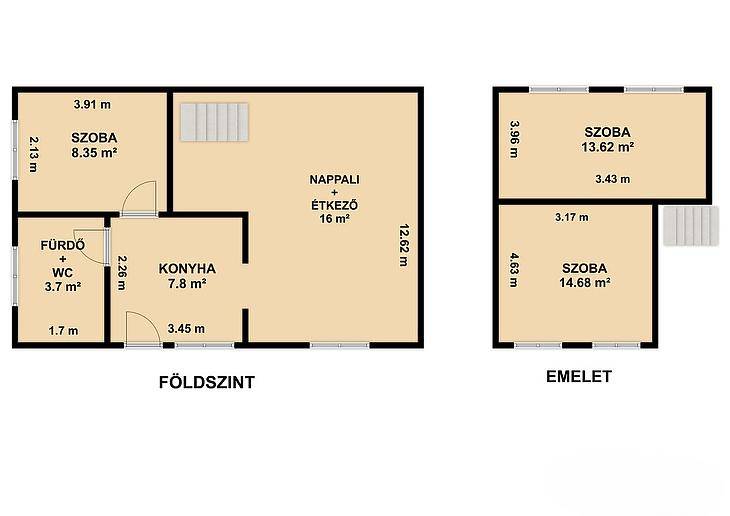 XVII. KERÜLETBEN: RÁKOSKERESZTÚRÓN, ELADÓ EGY 260 m²-ES, ÖSSZKÖZMŰVES TELKEN FEKVŐ, JÓ ÁLLAPOTÚ, 68 m²-ES IKERHÁZFÉL.AZ ÉPÜLET JELLEMZŐI:A ház téglából épült, beton alappal és beton födémmel rendelkezik. A tetőn 20 cm-es kőzetgyapot szigetelés található.A házon 5 cm-es dryvit szigetelés van.A nyílászárók műanyagok, az emeleti szobákban pedig fából vannak.A fűtés és melegvíz ellátásáról kombi cirkó gondoskodikMinden helyiség parkettás, a fürdő és wc kivételével, azok járólappal burkoltak. A villanyvezetékek cserélve lettek.Elrendezés: Földszint: 1 szoba, nappali + étkező, konyha, zuhanyzós fürdő + wc.Emelet: 2 szobaKörnyék: Rákoskeresztúr központjához közel, csendes mellékutcában található. Közelben iskola, óvoda, gyógyszertár, orvosi rendelő bevásárlási lehetőség. Az Mo-ás autópálya 5 perc alatt közelíthető meg. Közelben 97 E gyors buszjárat az Örs vezér térre, valamint 161,161E, 202E, 169E nappali és 956, 990-es éjszakai járatok érhetők el.IRÁNYÁR: 74.9 M Ft.VEVŐINK RÉSZÉRE A KÖZVETÍTÉS DÍJTALAN!A hirdetésben szereplő adatok tájékoztató jellegűek. |