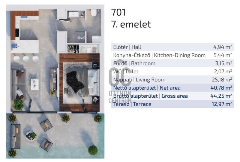Debrecen egyik legmodernebb és legkülönlegesebb lakóépületében, az Egyetem Tower 7. emeletén kiadó egy luxus hangulatú, teraszos lakás 03.01-től.Az épület nem csupán társasház – valódi, szállodai színvonalú életérzést kínál: portaszolgálat, liftes teremgarázs, valamint tetőtéri wellness részleg medencével, szaunával és napozóterasszal. Az elegáns közösségi terek és a prémium kivitelezés minden részletében minőséget sugároz.Lakás adatai – br. 45 m² + 13 m² terasz:- világos nappali hálórész kialakítással (25 m²)- gépesített, modern konyha–étkező (5 m²)- elegáns fürdőszoba (5 m²)- praktikus előtér gardróbbal (5 m²)- hangulatos, privát terasz.Bútorozott, teljesen gépesített, letisztult és igényes enteriőr – ideális választás azoknak, akik kompromisszumok nélkül szeretnének élni egy új építésű, prémium környezetben.Parkolás: teremgarázsban bérelhető (+30.000 Ft/hó)Bérleti díj: 370.000 Ft/hó + rezsiMinimum bérlés: 1 évKaució: 2 haviTovábbi információért és megtekintésért várom hívását! |