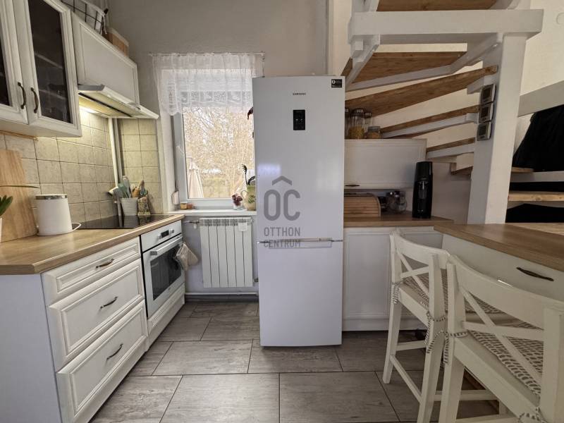 -----Alsógöd elit részén OKOS családi ház, szinte 0 rezsivel--------OKOSOTTHON RENDSZER-NAPELEMRENDSZER..A ház teljes BERENDEZÉSSEL ELADÓ, szinte AZONNAL BIRTOKBAVEHETŐ...Göd az északi agglomeráció ékköve, a Dunakanyar kapuja, egy barátságos kertváros a zsibongó Duna partján Budapesttől mindössze 20perces autóútra. Híres jó nevű iskoláiról, városi fejlesztéseiről, pezsgő kulturális életéről, remek infrastruktúrájáról és zöld környezetéről, így méltán vált a kiköltöző Családok dobogós választásává az elmúlt években.Unikális természeti adottságai közé tartozik a Feneketlen Tó, az Erzsébetliget és a páratlan Homoksziget.Itt, a város legjobb részén, a Dunaparttól 1km-en belül, Alsógöd csendes, átmenőfogalomtól mentes családi házas utcájában került eladósorba egy bűbájos hangulatú CSALÁDI HÁZ.A 80as években épült alap épület több szakaszban került TELJES FELÚJÍTÁSRA, így a közműhálózatok (víz, csatorna, áram 3x32Amp, 3fázis) cserélve lettek, a ház csinos 10cm-es Dryvit palástot kapott, tetőszerkezet födém és tetősíkszigetelést. Nyílászárók thermoüveges műanyagtokos egységek, elektromos redőnnyel ellátva és minden irányba zöldre nézve :)A beltér bűbáját a vintage hangulat adja, mely a látszógerendáktól a nude burkolatokig otthonos, és elegáns harmóniában fogja össze a tereket.Hőszabályozására több opció adott:-elektromos kazán (NAPELEMRENDSZERREL A FŰTÉS O!!! FT)-kondenzációs cirkókazán-inverteres klímaegységekFöldszinten fedett terasz(télikert), tágas, világos nappali, előszoba-közlekedő, konyha, fürdőszoba alkotják a helyiséglistátEmeleten jelenleg 2 hálószoba, fürdőszoba és home office sarok kapott helyet.Az emeleti szinten kialakítható további egy szoba minimális költségből!A HÁZ KULCSMENTES, A BELÉPTETÉS, HŐSZABÁLYOZÁS, REDŐNYRENDSZER és MINDEN ELEKTROMOSAN MŰKÖDŐ EGYSÉG TÁVOLRÓL MŰKÖDTETHETŐ!A telekterület egészséges méretű, fúrt kúttal, öntözőrendszerrel ellátott, kerten belül 2 autónak fedett beállóval.Közelben MINDEN amire a kényelmes hétköznapokhoz szüksége lehet: kis és nagyobb élelmiszerbolt, zöldséges, busz és vasútmegálló, óvoda, iskola, ATM, étterem, játszótér, Dunapart |