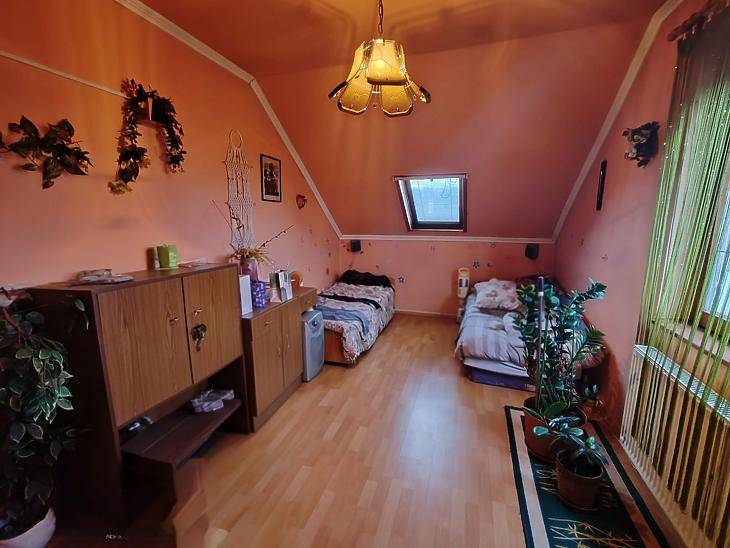 BUDAPEST XVII. KERÜLET – RÁKOSHEGY, ELADÓ EGY 192 NÉGYZETMÉTERES, 2 GENERÁCIÓS, KÉTSZINTES, KÜLÖN BEJÁRATÚ, KÜLÖN ÓRÁZOTT, ÖNÁLLÓ CSALÁDI HÁZA 717 NÉGYZETMÉTERES TELEKKEL ÉS 12 NÉGYZETMÉTER ÜZLETHELYISÉGGEL ÉS EGY 47 NÉGYZETMÉTERES PINCÉVEL.Műszaki adatok:Földszint:Építés éve: 1977-ben épült az alsó szint, mely felújítandó állapotú, itt a nyílászárok részben 3 rétegű gázos műanyagra lettek cserélve.Elrendezés: 3 szoba, konyha, kamra, kádas + zuhanyzós fürdőszoba wc-vel, előszoba, közlekedő, tároló, terasz. A szobákban parketta, a többi helyiségben pedig járólap található.Emelet:1999-ben lett hozzá építve a felső szint, minden helyiségben 2 rétegű, gázos fa nyílászárok vannak. A vezetékek cserélve lettek.Kialakítás: 3 szoba, amerikai konyhás nappali, kádas + zuhanyzós fürdőszoba, wc, közlekedő, kamra, erkély.A szobákban parketta a konyhában és a közlekedőben mozaik lap, a többi helyiségben pedig járó lap található.A szinten ipari áram is be lett vezetve.A két lakás külön bejárattal és külön mérőórákkal rendelkezik.Fűtés és melegvíz:A ház melegét mind két szinten FÉG kazán biztosítja, a melegvízről pedig gázbojler gondoskodik, valamint a felső szinten hűtő-fűtő klímák lettek beszerelve.Környék:Az ingatlan Rákoshegy csendes mellékutcájában található. A közelben iskola, óvoda, gyógyszertár, orvosi rendelő és bevásárlási lehetőségek is elérhetők.Finanszírozás:Banki finanszírozással is megvásárolható, melyben irodánk ingyenes tanácsadással áll rendelkezésre.Irányár: 149,9 M Ft.Vevőink részére a közvetítés díjtalan.A hirdetésben szereplő adatok tájékoztató jellegűek. |