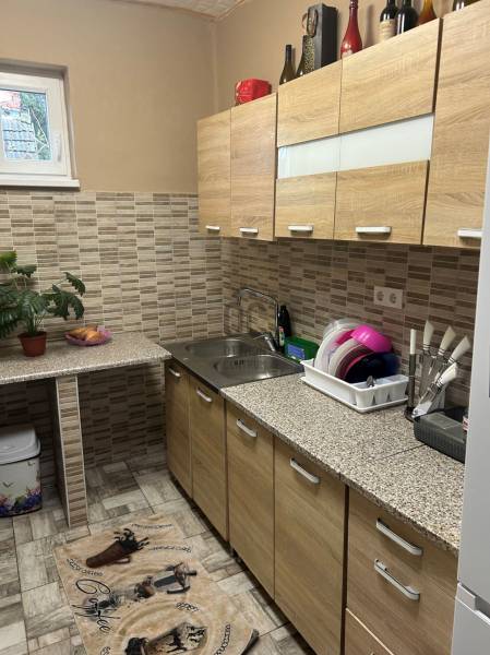 Megvételre kínálok Demecserben, csendes, polgárias mellékutcában, egy 1967-ben vegyes falazatból épült (vályog és szilikát) cserepes lemezzel fedett családi házat 1365 nm-es, 23 méter széles telken. Az ingatlan 2020 -ban jelentős felújításon esett keresztül, a tetőt átfedték, a külső nyílászárókat hőszigetel műanyagra cserélték, az ablakokat redőnnyel szerelték fel. Az elektromos hálózat cseréje is megtörtént, továbbá az előszoba-nappalit, a sarokkádas wc-fürdőszobát, valamint a konyhát járólappal burkolták át. A melegről gázkonvektorok, valamint két cserépkályha gondoskodik. A szobákban laminált padló, illetve járólap, a tágas, (25.4 nm) utcafronti szobában még az eredeti hajópadló burkolat található. Ebben a szobában a felújítás befejezése már az új tulajdonosra vár. Az épület folytatásaként egy kamra-tárolót alakítottak ki.Demecser családi házAz ingatlanról készült videó megtekinthető: http://youtu.be/vePLvgs7YHA |