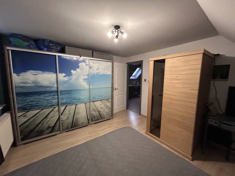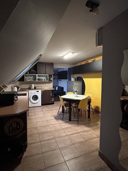 Eladó emeleti társasházi lakás erdős, nyugodt környezetben – Dabas központjában! Dabas központjában, csendes zsákutca végén, erdős környezetben eladó egy 82 nm-es, tégla építésű, emeleti társasházi lakás, saját kerttel és számos extrával.Szerkezeti jellemzők:• Falazat: hőszigetelt 38-as Porotherm tégla• Tetőszerkezet: fa szerkezetű, cserép fedéssel Helyiségek:• 2 + 1 félszoba• nappali• konyha (beépített, háztartási gépekkel együtt) –étkező • fürdőszoba• spejz• lépcsőfeljáró• erkély Műszaki tartalom:• Gázcirkó fűtés, radiátorokkal• Hűtő-fűtő klíma• Kétrétegű műanyag nyílászárók• Jó állapotú, festés után azonnal költözhető Extrák:• 300 nm-es parkosított, saját kert• kb. 30 nm-es garázs, elektromos garázskapuval• 12 nm-es nyári konyha, gépesített konyhabútorral• 20 nm-es fa szaletli• Automata öntözőrendszer• 20 méter mély fúrt kút• Elektromos kertkapu • külön WC az udvaron Elhelyezkedés:• Csendes, forgalomtól mentes zsákutca, barátságos szomszédok• Erdős, természetközeli környezet• Iskola, óvoda, boltok, buszmegálló pár percen belül elérhető Az ingatlan kizárólag készpénzes vevők részére eladó. Gyors birtokbaadás lehetséges. |