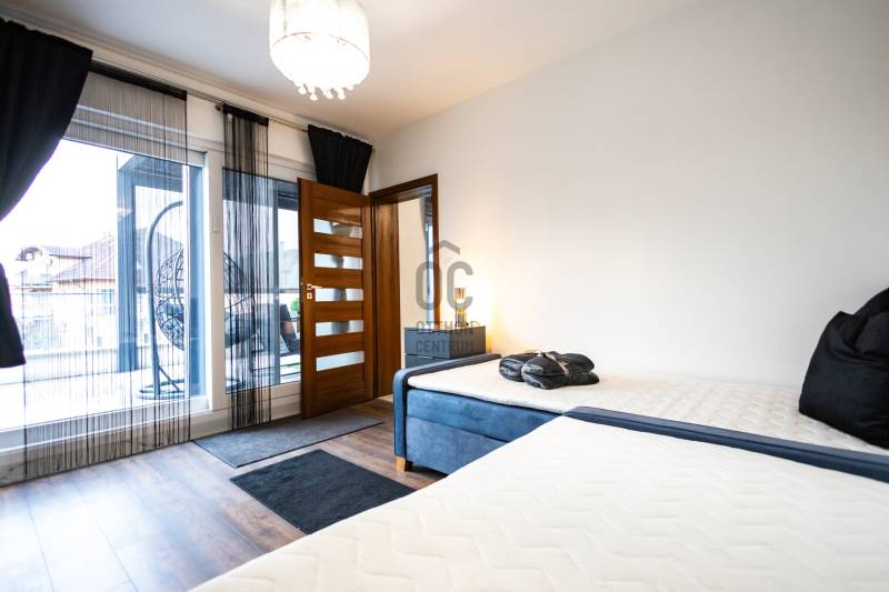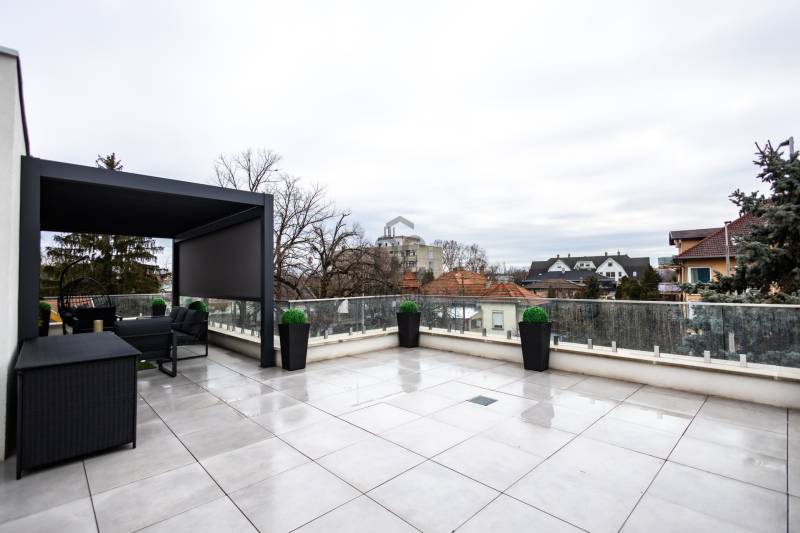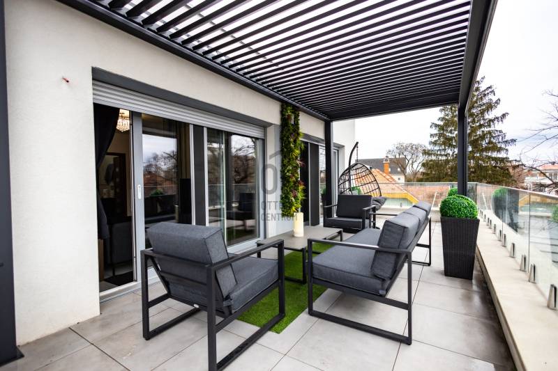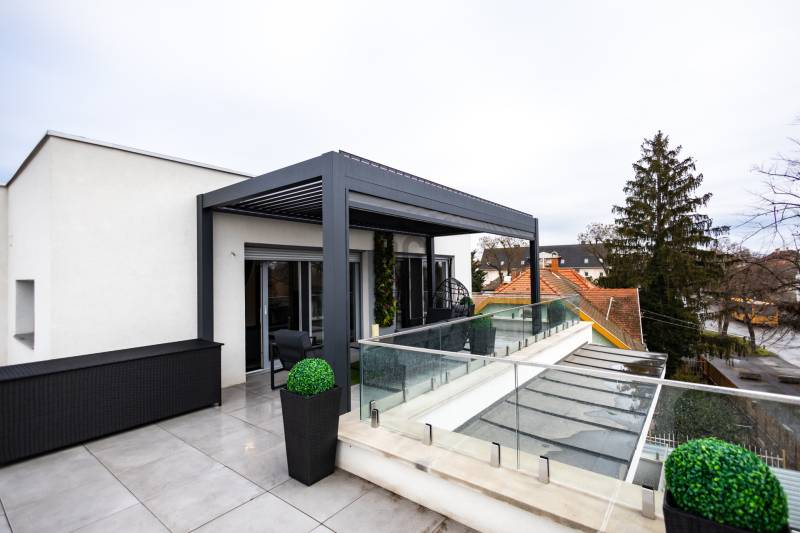 Kiadó a belváros egyik legkeresettebb lokációjában, a Széchenyi utcában egy exkluzív kialakítású, felső kategóriás penthouse lakás, amely minden igényt kielégít az igényes bérlők számára.Az ingatlan déli fekvésű, bruttó 68 m² alapterülettel rendelkezik, melyhez egy 90 m²-es, napfényes tetőterasz kapcsolódik, lenyűgöző, akadálytalan panorámával. A lakás kiváló benapozottságú, egész nap világos, nagy üvegfelületeinek köszönhetően.Helyiségkiosztás:-amerikai konyhás nappali-2 külön nyíló szoba-modern fürdőszoba-wc-előtér-panorámás tetőterasz (90m2)A lakás prémium minőségű anyagokkal, igényes belsőépítészeti megoldásokkal került kialakításra. Klimatizált, korszerű gépészettel felszerelt, energiahatékony, így alacsony rezsiköltséggel fenntartható. A modern konyha beépített gépekkel ellátott, a burkolatok és szaniterek magas minőséget képviselnek. Teljes bútorzattal kiadó a lakásban padlófűtés, mennyezet hűtés-fűtés található. A teraszon pergola, az ablakokon elektromos redőnyök, és elektromos zip függöny van felszerelve.A lakáshoz tartozik egy önálló,zárt garázs ,a társasház udvarán.Az ingatlan rendezett társasházban található, kiváló infrastruktúrával, tömegközlekedési csomópontok, üzletek, éttermek, szolgáltatások közvetlen közelében.Ideális választás üzletembereknek, pároknak vagy olyan bérlőknek, akik a prémium életérzést, panorámát és nyugalmat keresnek egyedülálló környezetben.További információért és megtekintésért keressen bizalommal. |