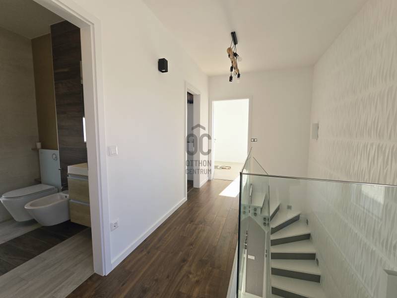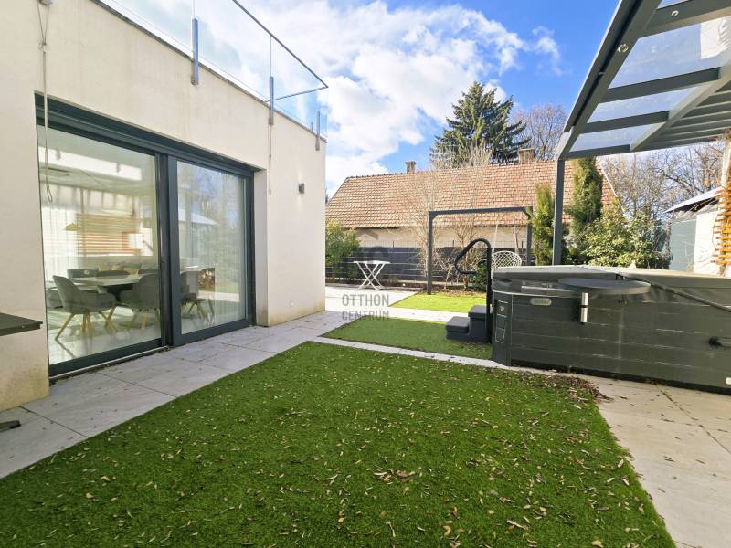 Minimál luxus és fenntarthatóság Pesthidegkúton – Azonnal költözhető álomotthonEladásra kínálunk Pesthidegkút egyik csendes, elegáns utcájában egy 172 m²-es, teljesen újszerű, minimál stílusú családi házat. A 2020-ben épült ingatlan a modern építészet és a prémium minőség találkozása, egy 582 m²-es, napsütötte, déli fekvésű telken.Főbb jellemzők:Tágas terek: Amerikai konyhás nappali + 4 különnyíló hálószoba.Design és funkció: Egyedileg tervezett, gépesített modern konyha és igényes, beépített bútorok találhatók az egész házban.Kültéri élmény: Mindkét szinten hatalmas teraszok kaptak helyet, amelyek közvetlen kapcsolatot teremtenek a természettel.Korszerű technológia: A környezettudatosság jegyében a ház fűtését és hűtését hőszivattyús rendszer biztosítja, garantálva az alacsony rezsiköltséget.Kert és kikapcsolódás: A gondozott, modern kertben egy jacuzzi kínál felfrissülést a mindennapokban.Parkolás: Két gépkocsi számára kialakított kényelmes beálló a telken belül.Miért ezt válassza?Az ingatlan azonnal költözhető, tehermentes, és nem igényel további ráfordítást. A déli tájolásnak köszönhetően a belső terek egész nap fényárban úsznak. A letisztult vonalvezetés, a minőségi anyaghasználat és a csendes budai környezet tökéletes harmóniát teremt.További kérdések esetén várom szíves hívását ! |