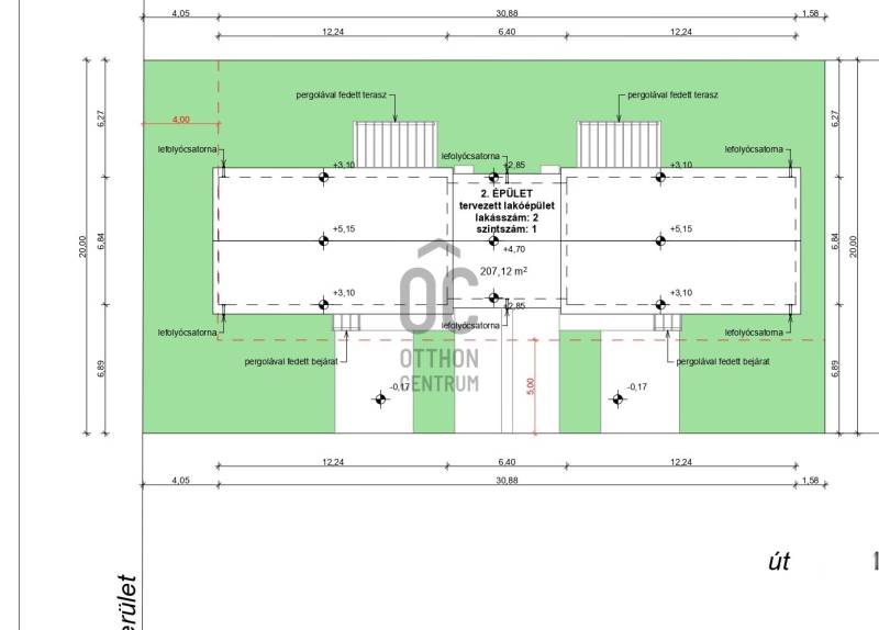Székesfehérvár közvetlen közelében, az autópályától 8 percre található Belsőbárándon, rendkívül csendes környezetben épülő 65,96 nm hasznos lakóterű modern, téglából épült lakóház eladó!Rövid műszaki leírás: 1. ház (2. épület)* Telek:365 nm* Amerikai konyhás nappali étkezővel, 2 szoba, fürdőszoba, 2 illemhelység, terasz + 1 beállásos garázs* 65,96 nm hasznos alapterület + 13,5 nm-es pergolával fedett terasz* A ház 30 cm vastag Leier 30 N+F tégla falazattal, 15 cm homlokzati hőszigeteléssel, 12 cm aljzatszigeteléssel, 30 cm üveggyapot padlásszigeteléssel épül* Fűtés: padlófűtés, az épület hőellátása levegő-víz hőszivattyúról történik* Tető 30 fokos nyeregtetős, fa födémes, beton tetőcseréppel fedett* Igény esetén napelem rendszer is telepíthető* Fehér 3 rétegű műanyag nyílászárók kerülnek beépítésre, redőnnyel, szúnyoghálóval felszerelve* Elektromos hálózat 3*25A* Burkolat: konyhában, közlekedő részen, fürdőszobában, mellékhelyiségben járólap, nappaliban, szobákban laminált parketta, terasz térkövezett* Épület körül kavics járda szegélykő, külső terasz térkő burkolat.Belsőbáránd közelében halad el a 63-as főút, így a falurész könnyen megközelíthető Székesfehérvár és Sárbogárd irányából is.A részletekkel kapcsolatban keressen bizalommal!Ha a vásárláshoz a jelenlegi ingatlana eladására van szükség, akkor abban is szívesen együttműködöm Önnel!Amennyiben hitelre van szüksége, az Otthon Centrum az ország egyik legnagyobb és legmegbízhatóbb hitelközvetítőjeként, teljes körű és díjmentes hitel ügyintézéssel áll ügyfelei rendelkezésére. |